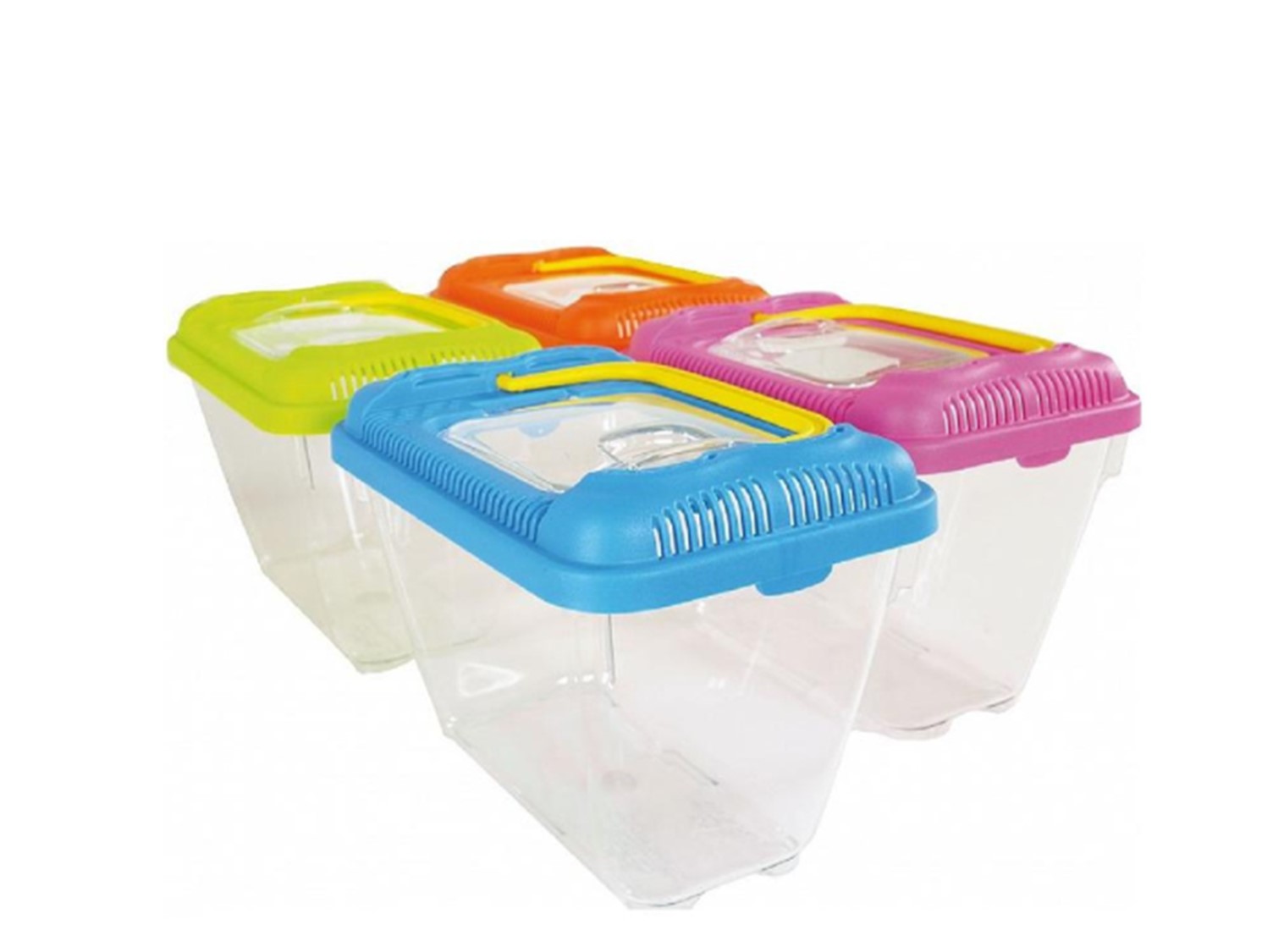 Πλαστική γυάλα κατάλληλη για μεταφορά ψαριών και ερπετών. Με άνοιγμα στο καπάκι για εύκολο τάϊσμα και χερούλια για την μεταφορά.Διατίθεται σε διάφορα χρώματα.