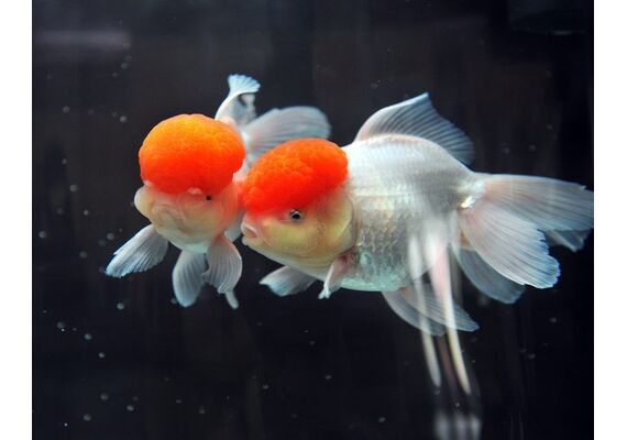 live tropical goldfish oranda lion head red cap, 5 cm