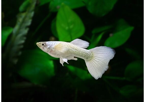 live tropical poecilia reticulata guppy velvet white 3.0 - 3.5 cm
