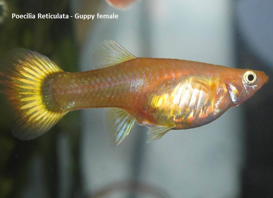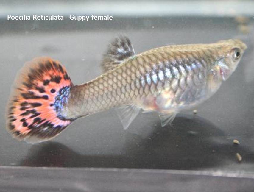 live tropical poecilia reticulata guppy assorted female, xl 4-4.5cm