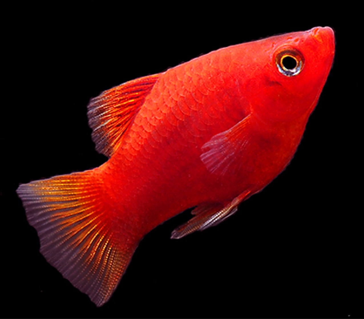 live tropical xiphophorus maculatus, coral red platy - s 2.0 2.5 cm