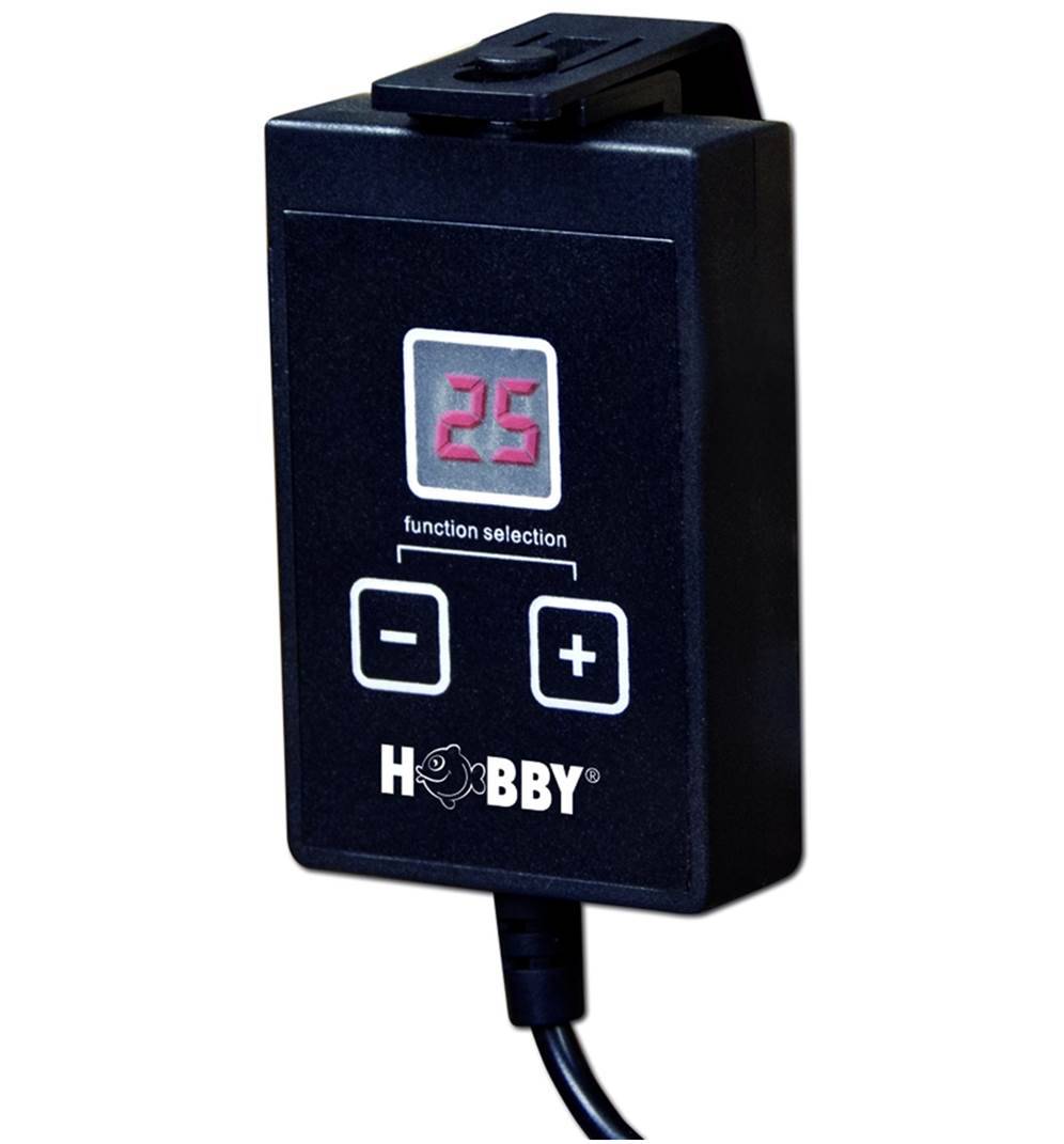 Έλεγχος Aqua Cooler Hobby/>Το σύστημα Hobby Aqua Cooler Control έχει σχεδιαστεί ειδικά για χρήση σε συνδυασμό με τους ψύκτες Hobby Aqua Coolers και τους ελέγχει ακριβώς στο βαθμό. Ο ενσωματωμένος αισθητήρας μετρά τη θερμοκρασία στο ενυδρείο και επίσης δείχνει τη θερμοκρασία στην ψηφιακή οθόνη του ελεγκτή ακριβώς στο 1 ° C. Με ένα εύρος ρυθμίσεων 10 - 40 ° C και τρεις προγραμματιζόμενες ταχύτητες, μπορείτε να ρυθμίσετε το HOBBY Aqua Cooler στο ανάγκες του ενυδρείου.<img src=Έλεγχος Aqua Cooler Hobby+ ειδικά σχεδιασμένο για χρήση σε συνδυασμό με τους ψύκτες Hobby Aqua+ ελέγχει και μετράει τη θερμοκρασία του ενυδρείου ακριβώς στο 1 ° C+ ψηφιακή οθόνη καθιστά ιδιαίτερα εύκολη την ανάγνωση και τη λειτουργία+ εύρος ρύθμισης από 10 - 40 ° C και τρία προγραμματιζόμενα επίπεδα ταχύτητας+ απλά συνδέστε το Hobby Aqua Cooler V2 ή V4 μέσω μιας σύνδεσης βύσματος/>Τεχνικά στοιχεία Hobby Aqua Cooler Controlισχύς εισόδου: 12 V / μέγ. 2 Αισχύς εξόδου: 12 V / μέγιστο. 2Αισχύς: μέγ. 24 Wτάση λειτουργίας: 12 V DC μέσω της τροφοδοσίας του ανεμιστήρα ψύξης που χρησιμοποιείταιΕύρος οθόνης θερμοκρασίας: 0 - 50 ° CΠεριοχή ελέγχου θερμοκρασίας: 0 - 40 ° Cακρίβεια της ένδειξης θερμοκρασίας: 1 ° Cακρίβεια ελέγχου θερμοκρασίας: +/- 0,1 ° Cανοχή αισθητήρα θερμοκρασίας: +/- 0,5 ° CΣύνδεση βύσματος: DC 5/2 mmμήκος καλωδίου αισθητήρα: 1,2 mμήκος καλωδίου σύνδεσης: 0,4 μ<img src= Δεν υπάρχει διαθέσιμη περιγραφή για τη φωτογραφία.Hobby Aqua Cooler ControlThe Hobby Aqua Cooler Control was specially developed for use in conjunction with Hobby Aqua Coolers and controls these precisely to the degree. The integrated sensor measures the temperature in the aquarium and also shows the temperature on the controller’s digital display precisely to 1° C. With an adjustment range of 10 - 40° C and three programmable speed, levels you can adjust the HOBBY Aqua Cooler to your aquarium’s needs. Simply connect the Hobby Aqua Cooler Control via a plug connection (DC 5/2 mm) to the Hobby Aqua Cooler V2 or V4, attach the sensor to any location within the aquarium, configure the desired temperature, and you’re done!/>Hobby Aqua Cooler Control+ specially developed for use in conjunction with Hobby Aqua Coolers+ controls and measures the aquarium temperature precisely to 1° C+ digital display makes it particularly easy to read and operate+ adjustment range from 10 - 40° C and three programmable speed levels+ simply connect the Hobby Aqua Cooler V2 or V4 via a plug connectionΤechnical data Hobby Aqua Cooler Controlinput power: 12 V/max. 2 Aoutput power: 12 V/max. 2Awattage: max. 24 Woperating voltage: 12 V DC via the power supply of the cooling fan usedtemperature display range: 0 - 50° Ctemperature control range: 0 - 40° Ctemperature display accuracy: 1° Ctemperature control accuracy: +/-0.1° Ctemperature sensor tolerance: +/- 0.5 ° Cplug connection: DC 5/2 mmlength of sensor cable: 1.2 mlength of connection cable: 0.4 m Thank you for choosing the Aqua Cooler Control. These instructionsare part of the product. They contain important information on how to set up and use the device. Please retain these operating instructions for future reference!Scope of delivery:The Aqua Cooler Control set consists of a digital temperature controller for 12V aquarium coolers, as well as a separate safety extra-low voltage isolating transformer.Set up:The product controls and measures the aquarium temperature to precisely 1° C with the aid of an aquarium cooler. Caution: Do not connect the device to the mains during assembly!Programming:The Aqua Cooler Control features a programmable adjustment range from 10 - 40° C and three speed levels.1. Hold the “+” button pressed for a few seconds. You will reach the temperature settings menu.2. Set the desired temperature using the “+” and “-” buttons. The adjustment range is 0 - 40° C. The value set is automatically saved after a few seconds.3. Hold the “-” button pressed for a few seconds. You will reach the rotational speed settings menu for the rotor.4. Set the desired rotational speed using the “+” and “-” buttons. There are three setting options: Level 1: Slow · Level 2: Medium · Level 3: FastThe level set is automatically saved after a few seconds. Depending on the level you have set, the evaporation rate, and therefore the cooling rate, will reduce.Safety instructions:The Aqua Cool Control may only be operated using a suitable safety extra-low voltage isolating transformer. The product may only be used to regulate the temperature of aquarium coolers. Any other use may result in the product being damaged and the warranty expiring. Never open the product autonomously and never carry out repairs independently. The set is not a children’s toy. Therefore, keep the set out of the reach of children. The product may not be exposed to any mechanical pressure. Shocks, impacts, or falls, even from a low height, can result in damage.Stop using the devices contained in the scope of delivery if they are damaged.Please ensure when laying the cable that no o