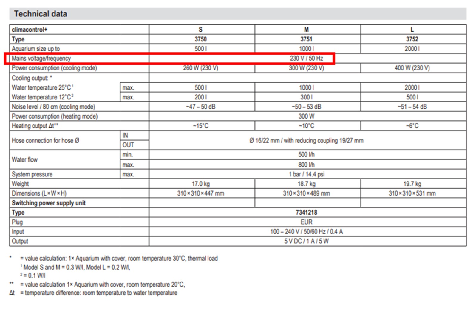 EHEIM climacontrol+ LEAN: 4011708012574Αριθμός είδους: 3752210Εγγύηση κατασκευαστήΜπορείτε να χρησιμοποιήσετε το EHEIM climacontrol+ για να μειώσετε τη θερμοκρασία του νερού τις ζεστές μέρες ή να το ζεστάνετε τις κρύες μέρες, όπως ακριβώς το χρειάζονται οι κάτοικοι του ενυδρείου σας.Το EHEIM climacontrol+ είναι η νέα μας ηλεκτρονικά ελεγχόμενη συσκευή ελέγχου κλιματισμού. Απλώς ρυθμίζετε ασύρματα την ιδανική θερμοκρασία νερού - μέσω smartphone, tablet ή PC/MAC. Εάν το νερό είναι πολύ ζεστό, η μονάδα κρυώνει αυτόματα και αν κρυώσει πολύ ζεσταίνεται. Η μονάδα παρακολουθεί και ελέγχει τα πάντα.Επίσης, σας δίνει προηγμένη προειδοποίηση για τυχόν προβλήματα, όπως εάν η απαιτούμενη θερμοκρασία ξεπεραστεί ή υποβιβαστεί κατά 2 °C για περισσότερα από 5 λεπτά, λαμβάνετε ένα προειδοποιητικό e-mail.Οι υψηλές εξωτερικές θερμοκρασίες συχνά προκαλούν υπερθέρμανση του νερού του ενυδρείου το καλοκαίρι. Αυτό είναι εξαιρετικά επιβλαβές για τα ψάρια και όλα τα άλλα ζωντανά πλάσματα. Για παράδειγμα, εάν η θερμοκρασία είναι πολύ υψηλή, τα κοράλλια πεθαίνουν στο θαλάσσιο ενυδρείο και στα ενυδρεία γλυκού νερού, η ανεπάρκεια οξυγόνου και ο πολλαπλασιασμός των φυκών εμφανίζονται γρήγορα.Το EHEIM climacontrol+ είναι η βέλτιστη συσκευή ελέγχου κλιματισμού για ενυδρεία. Έχει χαμηλή κατανάλωση ενέργειας και λειτουργεί με φιλικό προς το περιβάλλον ψυκτικό υγρό.Υπάρχουν τρεις διαθέσιμες συσκευές κλιματισμού: S, M και L - για ενυδρεία έως 500, 1000 και 2000 λίτρα και συνοδεύονται από εγγύηση 3 ετών.Χαρακτηριστικά του EHEIM climacontrol+Ηλεκτρονικά ελεγχόμενη συσκευή ελέγχου κλιματισμού συνεχούς ροής με λειτουργία Wi-FiΡύθμιση θερμοκρασίας και έλεγχος μέσω WiFi μέσω smartphone, tablet ή PC/MACΛειτουργία ψύξης και θέρμανσηςΣυνεχής ρύθμιση της θερμοκρασίας του νερούΈλεγχος θερμοκρασίας νερού σε γλυκά και θαλάσσια ενυδρείαΑκριβής ανίχνευση θερμοκρασίας από 5 °C έως 35 °CΕνεργοποιείται αυτόματα πάνω ή κάτω από μια καθορισμένη θερμοκρασία στόχουΠροειδοποίηση email εάν η θερμοκρασία υπερβεί ή πέσει κάτω από τους 2 °C για περισσότερα από 5 λεπτάΕμφανίζει συνεχώς την τρέχουσα θερμοκρασία του νερού όταν βρίσκεται σε λειτουργίαΧρησιμοποιήστε το σε θερμοκρασία περιβάλλοντος από 10 °C έως 38 °CΠολύ ενεργειακά αποδοτική και φιλική προς το περιβάλλον συσκευή ελέγχου κλίματος με ψυκτικό μέσο φιλικό προς το όζον (R290)Να λειτουργεί αποκλειστικά με καθαρό (φιλτραρισμένο) νερό. δηλαδή για θαλάσσια ενυδρεία μέσω ξεχωριστής αντλίας με νερό από τη δεξαμενή φίλτρου ή για ενυδρεία γλυκού νερού θέση πίσω από το εξωτερικό φίλτρο (εναλλακτικά μέσω ξεχωριστής αντλίας με προφίλτρο απευθείας από το ενυδρείο)Υπάρχουν τρεις συσκευές κλιματισμού: S, M και L - για ενυδρεία έως 500, 1000 και 2000 λίτραΚατασκευασμένο από υψηλής ποιότητας ανταλλακτικά και υλικά, και συνοδεύεται από 3 χρόνια εγγύησηΣημαντικό για ενυδρεία θαλάσσιου νερού:Βέλτιστη θερμοκρασία για κοράλλια μεταξύ 24 και 26 °C. πάνω από 29,5 °C πεθαίνουν.Σημαντικό για ενυδρεία γλυκού νερού:Η θερμοκρασία πρέπει να είναι πάντα κάτω από 30°C. Πάνω από αυτή τη θερμοκρασία υπάρχει κίνδυνος έλλειψης οξυγόνου, αναστολής της ανάπτυξης των φυτών, πολλαπλασιασμού φυκιών.EHEIM climacontrol+ – η ηλεκτρονικά ελεγχόμενη συσκευή ελέγχου κλιματισμού με λειτουργία WLAN και πολλά πλεονεκτήματαΤο EHEIM climacontrol+ έχει το κύριο καθήκον να ψύχει το νερό του ενυδρείου όταν η θερμοκρασία είναι πολύ υψηλή. Παρέχει λειτουργία ψύξης και θέρμανσης.Το καλοκαίρι, οι υψηλές 