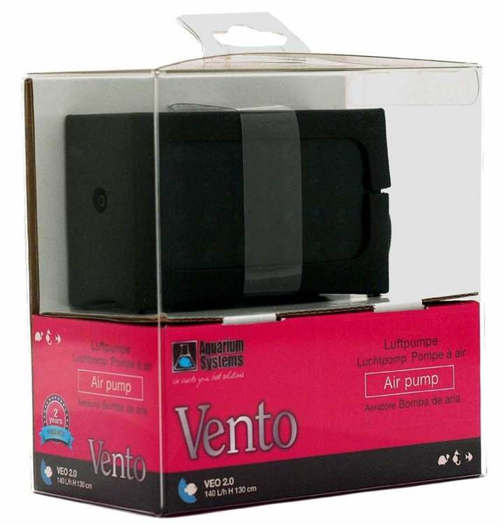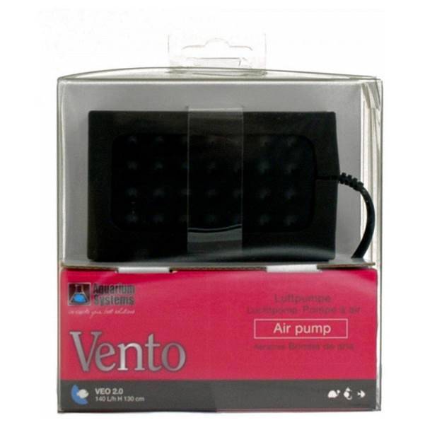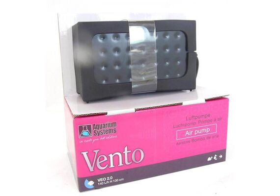 Η σειρά αντλιών αέρα ενυδρείου Aquarium Systems Series Vento προσφέρει χαμηλή κατανάλωση ενέργειας και ισχυρή έξοδο αέρα ακόμη και στα βαθύτερα ενυδρεία. Τα κύρια χαρακτηριστικά τους είναι η ευελιξία και η σιωπή. Εξαιρετικά ήσυχη, η εσωτερική της κατασκευή μειώνει τον θόρυβο λειτουργίας καθώς και τον θόρυβο συντονισμού. Επιπλέον, μπορείτε να προσαρμόσετε στην Vento αεραντλία σας ένα πολύχρωμο και διακοσμητικό καπιτονέ μπουφάν που θα αυξήσει την απορρόφηση του θορύβου και των κραδασμών προσθέτοντας ένα άγγιγμα στυλ.Η αεραντλία Aquarium Systems Air Pump Vento 2.0 έχει μία έξοδο αέρα με παροχή 140 λ/ω, περιλαμβάνει εύκαμπτο σωλήνα αέρα, διαχύτη οξυγόνου και βαλβίδα αντεπιστροφής. Όλες οι αντλίες αέρα της σειράς Vento έρχονται με 1 ανταλλακτικό τσόχινο φίλτρο αέρα.Πλεονεκτήματα:Ευελιξία και σιωπή.Εξαιρετικά αθόρυβη, με εναλλάξιμο προφυλακτήρα από ελαστικό καπιτονέ μπουφάν κέλυφος για να μειώνει τον κραδασμό και τον υπολειπόμενο θόρυβο. Δυνατότητα προσαρμογής του VENTO με διαφορετικό προφυλακτήρα χρώματος.Χαμηλή κατανάλωση ενέργειας.Ισχυρή ροή αέρα ακόμα και στα βαθύτερα ενυδρεία.Ποιοτικά συστήματα αντλιών αέρα ενυδρείων, 2 χρόνια εγγύηση.Παρέχεται με εύκαμπτο σωλήνα αέρα 2 μέτρων, βαλβίδα αντεπιστροφής και διαχύτη οξυγόνου 25 mm.Όλες οι αντλίες αέρα της σειράς Vento έρχονται με 1 ανταλλακτικό τσόχινο φίλτρο αέρα.Χαρακτηριστικά:Μέγιστη ταχύτητα ροής: 140 λίτρα ανά ώραΕξόδους αέρα: 1Ρυθμιζόμενη ροή: όχιΜέγιστο Βάθος νερού: 1,30 μέτραΙσχύς: 3 ΒαττΔιαστάσεις: μήκος 127 πλάτος 46 και ύψος 75 χιλιοστά.Ιδανικό για ενυδρείο μέχρι 150 λίτρα The Aquarium Systems Vento Series offers low power consumption and a strong air outlet even in deeper aquariums. Their main features are flexibility and silence. Extremely quiet, its internal design reduces operating noise as well as resonant noise. In addition, you can customize your Vento Pump with a colorful and decorative quilted jacket that will increase the absorption of noise and vibration by adding a styling touch.The Aquarium Systems Air Pump Vento 2.0 has one air outlet with 140 l / h, including air hose, non-return valve and oxygen diffuser.All Vento air pumps come with 1 spare air filter felt.Benefits:Flexibility and silence.Extremely silent, with an interchangeable rubber bumper shell rubber bumper to reduce vibration and residual noise. VENTO can be adjusted with a different color protector.Low power consumption.Strong airflow even in deeper aquariums.Quality aquarium air pump systems, 2 year warranty.Supplied with air tube 2 meters, non-return valve and oxygen diffuser 25 mm.Characteristics:Maximum flow rate: 140 l/hAir outlets: 1Adjustable flow: noMaximum Water Depth: 1.30 meterPower: 3 WattsDimensions: length 127 width 46 and height 75 mm.Ideal for aquarium up to 150 liters.
