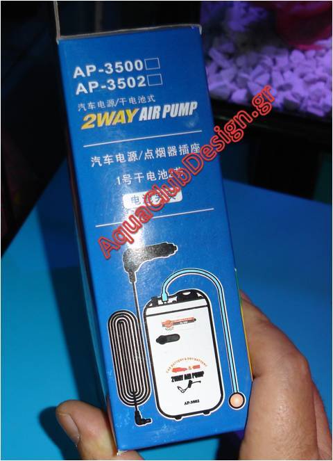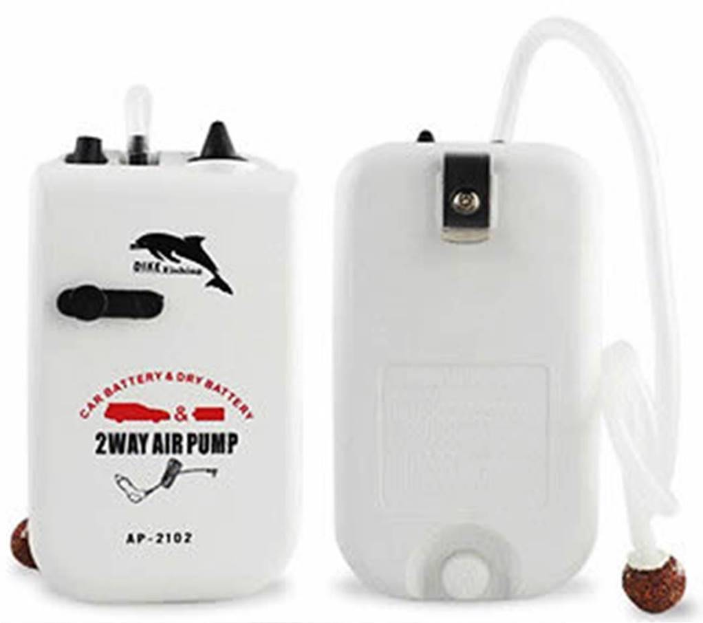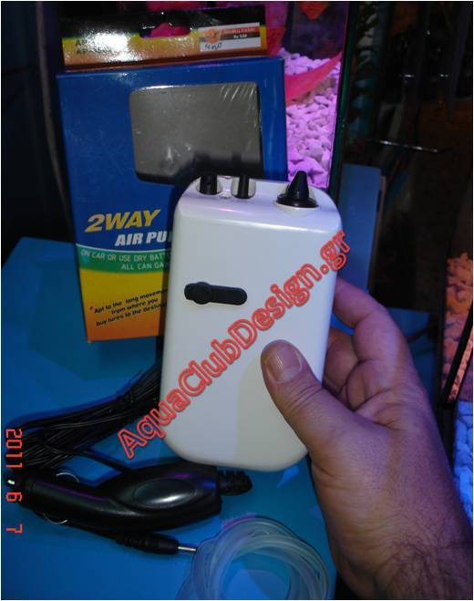 Αεραντλίες παροχής αέρος για την οξυγόνωση του νερού, σύνδεση με μπαταρία αυτοκινήτου, σκάφους η UPS, επίσης λειτουργούν με μεσαίες μπαταρίες 2x1.5V, με διακόπτη με παροχή αέρος 2 ταχυτήτων, κατάλληλη ως εφεδρική για ενυδρεία σε διακοπές ηλ.ρεύματος, επίσης στο ψάρεμα για την διατήρηση ζωντανού δολώματος αλλά και αλιευμένων ψαριών.