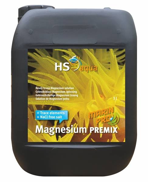 Το HS aqua Marin Pro Magnesium Premix είναι μια έτοιμη λύση για την αύξηση των πολύ χαμηλών επιπέδων μαγνησίου σύμφωνα με το σύστημα HS aqua Marin Pro. Εκτός από το μαγνήσιο HS aqua Marin Pro Magnesium Premix περιέχει αλατισμένο αλάτι χωρίς χλωριούχο νάτριο και άλλα σημαντικά ιχνοστοιχεία στη σωστή αναλογία. Το μαγνήσιο είναι πολύ σημαντικό για σταθερές τιμές νερού, ειδικά για την τιμή KH. Στο φυσικό θαλασσινό νερό τα επίπεδα μαγνησίου διαφέρουν μεταξύ 1200 και 1400 mg / l. Με την επίδραση πολλών βιολογικών διεργασιών η περιεκτικότητα σε μαγνήσιο μειώνεται κατά τη διάρκεια του χρόνου. Ως εκ τούτου, συνιστούμε να μετράτε εβδομαδιαίως το περιεχόμενο μαγνησίου. Το HS aqua Marin Magnesium Ready περιέχει ανά 1 ml περίπου. 80 mg μαγνήσιο. Δόση σύμφωνα με τη μετρούμενη χρήση.HS aqua Marin Pro Magnesium Premix is a ready to use solution to increase too low magnesium levels according the HS aqua Marin Pro system. Besides magnesium HS aqua Marin Pro Magnesium Premix contains sodium chloride free sea salt and other important trace elements in the right proportion. Magnesium is very important for stable water values, especially for the KH-value. In natural seawater the magnesium levels differs between 1200 and 1400 mg/l. By the influence of several biological processes the magnesium content decrease during the time. Therefore we advise to weekly measure the magnesium content. HS aqua Marin Magnesium Ready contains per 1 ml ca. 80 mg Magnesium. Dose according the measured usage.