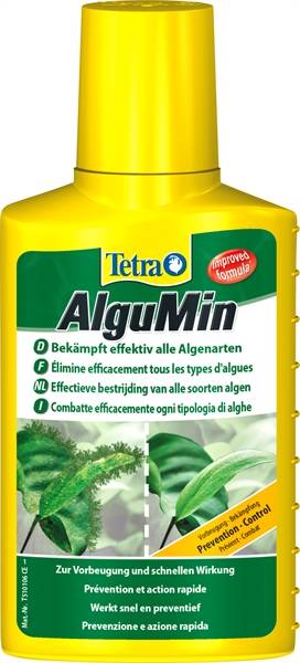 Το Tetra AlguMin* είναι η βέλτιστη θεραπεία για όλους τους τύπους φυκιών. Λόγω της υγρής του σύνθεσης, το εξαιρετικά δραστικό συστατικό απελευθερώνεται αμέσως και κατανέμεται βέλτιστα στο νερό του ενυδρείου.Καταπολέμηση των φυκιώνΠερισσότερες πληροφορίεςΒέλτιστος έλεγχος φυκιών: τα φύκια σε ένα ενυδρείο δεν είναι μόνο αντιαισθητικά, μπορούν επίσης να εμποδίσουν την ανάπτυξη των φυτών του νερού και να διαταράξουν τη βιολογική ισορροπία στο ενυδρείο σε μακροπρόθεσμη βάση. Το Tetra AlguMin* καταπολεμά αποτελεσματικά όλους τους τύπους φυκιών και είναι απαλό για όλους τους κατοίκους των ενυδρείων, τα φυτά και τους μικροοργανισμούς, εάν χρησιμοποιηθεί όπως ενδείκνυται. Η υγρή φόρμουλα καταπολεμά τα φύκια γρήγορα επειδή το εξαιρετικά δραστικό συστατικό επιτίθεται ειδικά στον μεταβολισμό των φυκών και εμποδίζει αποτελεσματικά την ανάπτυξη των φυκιών. Καθώς το δραστικό συστατικό απελευθερώνεται αμέσως και κατανέμεται βέλτιστα στο νερό του ενυδρείου, το Tetra AlguMin μπορεί να καταπολεμήσει γρήγορα τα φύκια. Το προϊόν δεν αποχρωματίζει το νερό του ενυδρείου. Το Tetra AlguMin είναι κατάλληλο για όλα τα ενυδρεία γλυκού νερού. Όταν χρησιμοποιείτε αυτό το προϊόν, το ενυδρείο πρέπει να αερίζεται, για παράδειγμα χρησιμοποιώντας μια αντλία αέρα ενυδρείου Tetra APS, για να διασφαλιστεί επαρκής παροχή οξυγόνου. Τα νεκρά φύκια πρέπει κατά προτίμηση να αφαιρούνται μηχανικά, με δίχτυ, ώστε να μην έχουν αρνητικό αντίκτυπο στην ποιότητα του νερού. Μετά τη θεραπεία, για να αποτραπεί η ανάπτυξη νέων φυκών μακροπρόθεσμα, τα θρεπτικά συστατικά των φυκών φωσφορικό και νιτρικό θα πρέπει να μειωθούν, π.χ. με Tetra EasyBalance. Ως προληπτικό μέτρο, μπορούν επίσης να χρησιμοποιηθούν σε τακτική βάση ειδικοί παράγοντες κατά των φυκιών που απελευθερώνουν το δραστικό τους συστατικό αργά στο νερό, όπως το Tetra Algetten* για ενυδρεία χωρητικότητας έως 40 λίτρα ή το Tetra AlgoStop depot* για μέτρια και μεγάλα ενυδρεία.Δοσολογία: 5ml/10lt (αφαιρούμε τα φύκια μηχανικά), επαναλαμβάνουμε μετά από 7 ημέρες αν χρειαστεί, ανακινούμε καλά πριν τη χρήση, το ενυδρείο είναι επαρκώς οξυγονωμένοTetra AlguMin* is the optimal treatment for all types of algae. Due to its liquid formula, the highly active ingredient is released immediately and is optimally distributed in the aquarium water.Combat algaeMore informationOptimum algae control: algae in an aquarium are not only unsightly, they can also inhibit the growth of water plants and upset the biological balance in the aquarium on a long-term basis. Tetra AlguMin* combats all types of algae effectively and is gentle for all aquarium inhabitants, plants and microorganisms if used as indicated. The liquid formula tackles algae quickly because the highly active ingredient specifically attacks the algae’s metabolism and effectively prevents algae growth. As the active ingredient is released immediately and distributed optimally in the aquarium water, Tetra AlguMin can combat algae quickly. The product does not discolour the aquarium water. Tetra AlguMin is suitable for all freshwater aquariums. When using this product, the aquarium needs to be aerated, for example using a Tetra APS aquarium air pump, to ensure a sufficient oxygen supply. Dead algae should preferably be removed mechanically, with a net, so that they do not have a negative impact on the water quality. After treatment, to prevent new algae growth in the long term, the algae nutrients phosphate and nitrate should be reduced, e.g. with Tetra EasyBalance. As a preventive measure, special anti-algae agents which release their active ingredient slowly into the water can also be used on a regular basis, such as Tetra Algetten* for aquariums with a capacity of up to 40 litres or Tetra AlgoStop depot* for medium and large aquariums.Dosage: 5ml/10lt (we remove the algae mechanically), repeat after 7 days if necessary, shake well before use, the aquarium is sufficiently oxygenated