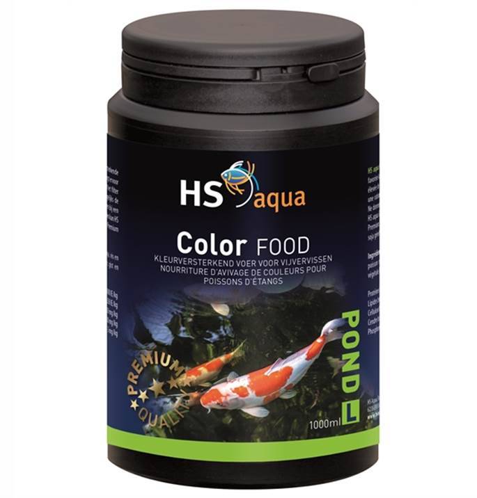Τροφή ενίσχυσης χρώματος ψαριών Hs Aqua Pond Food ColorΤο Aqua Pond Food Color περιέχει ένα εξαιρετικά υψηλό περιεχόμενο φυσικών συστατικών που ενισχύουν το χρώμα. Η ασταξανθίνη προάγει τα κόκκινα χρώματα και η βιταμίνη C εξασφαλίζει ότι το λευκό χρώμα παραμένει λευκό.Η υψηλή αφομοιωσιμότητα του Hs Aqua Pond Food Color εξασφαλίζει ότι στο φίλτρο είναι λιγότερο έντονο και δεν υγραίνει στο νερό.Τροφοδοτήστε 2-3 φορές την ημέρα την ποσότητα που τα ψάρια σας τρώνε μέσα σε λίγα (3-5) λεπτά.Τροφοδοσία ιχθυοτροφών μόνο σε θερμοκρασία νερού από 10ºC και άνω.Για να έχετε μεγαλύτερη ποικιλία για το Koi, το HS aqua Color μπορεί να συνδυαστεί τέλεια με όλα τα άλλα τρόφιμα HS aqua Pond Food Premium Koi.Δεν περιέχει ΟΓΓ γενετικά τροποποιημένη σόγια !! /> Hs Aqua Pond Food ColorHS aqua Pond Food Color contains an extra high content of natural color-enhancing ingredients. Astaxanthin promotes the red colors and Vitamin C ensures that the white color remains white. The high digestibility of Hs Aqua Pond Food Color ensures that the filter is less stressed and does not cloud the water. Feed 2-3 times daily the amount that your fish eat within a few (3-5) minutes. Only feed carry at a water temperature from 10º C. To provide more variety for your Koi, HS aqua Color can be combined perfectly with all other HS aqua Pond Food Premium Koi food. Contains NO genetically modified soy !!