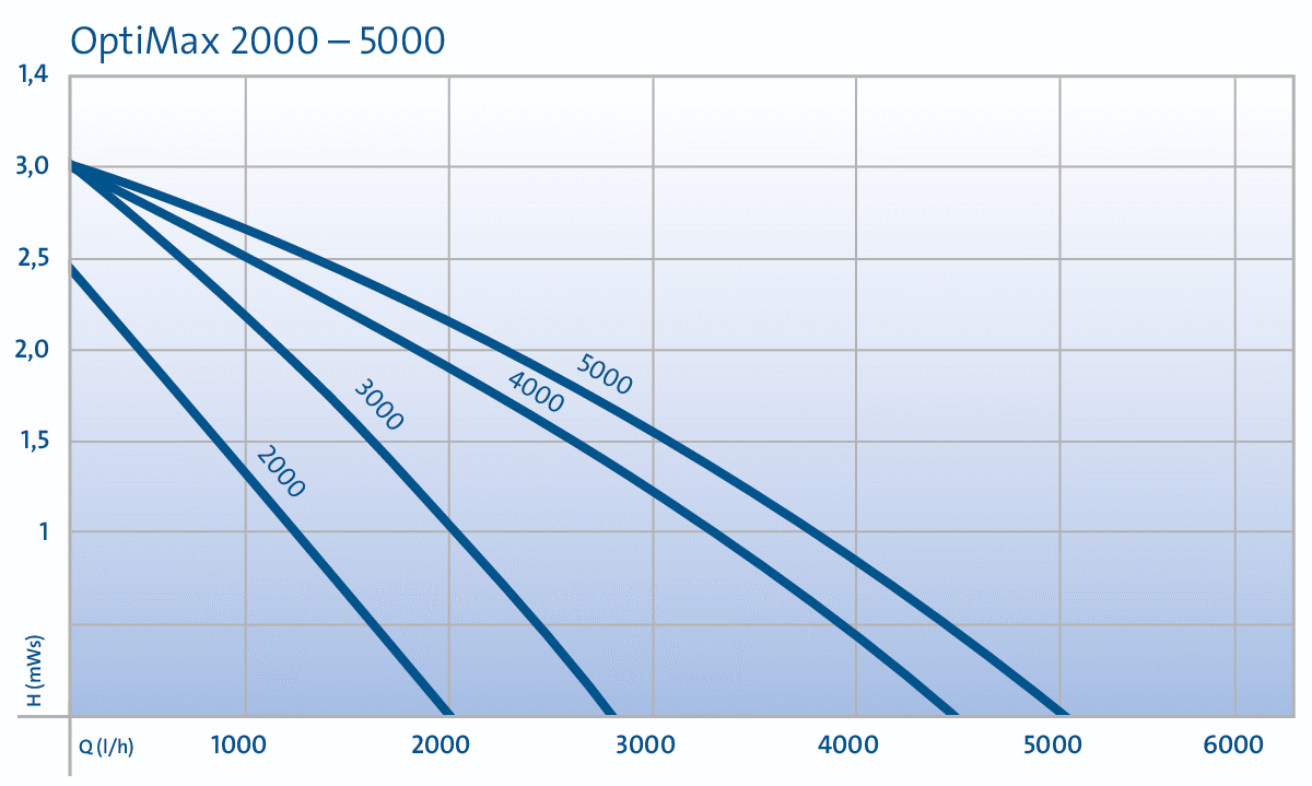 oase optimax 4000 - flow 4400 l/h max.head 3,00m 80w