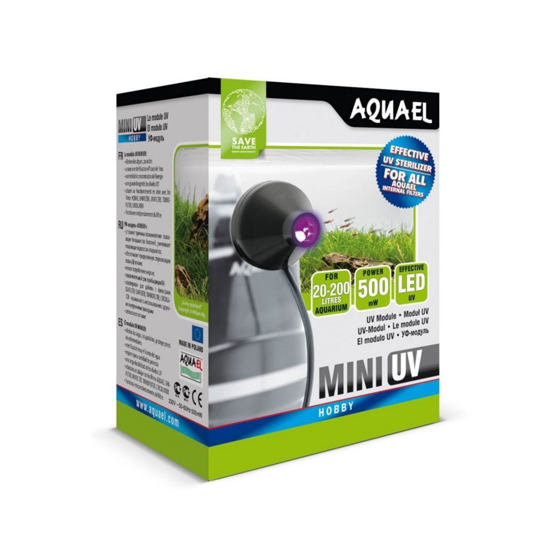 Κατάλληλο για ενυδρείο (lt): 20 – 200 ltΤο AQUAEL MINI UV είναι μια μοναδική συσκευή. Έχει τη μορφή κοντού μανικιού που εγκαθίσταται στην έξοδο του φίλτρου. Τέσσερις ενεργειακά αποδοτικές λυχνίες LED που εκπέμπουν υπεριώδη ακτινοβολία βρίσκονται στο εσωτερικό του, αποστειρώνοντας αποτελεσματικά το νερό που ρέει έξω από το φίλτρο. Είναι προσαρμοσμένο για συνεργασία με όλες τις σειρές εσωτερικών φίλτρων AQUAEL (FAN, UNIFILTER, TURBOFILTER, PAT MINI). Αφαιρεί τέλεια τα φύκια από το νερό, εμποδίζοντάς το να πρασινίσει. Σκοτώνει παθογόνα βακτήρια προστατεύοντας τα ψάρια από ασθένειες. Καταστρέφει επίσης τα πρωτόζωα που προκαλούν θόλωση του νερού.Η αποτελεσματικότητα του UV LED έχει ήδη δοκιμαστεί στα φίλτρα UNIFILTER UV POWER και στις μονάδες UNI UV για τα φίλτρα UNIFILTER. Επιπλέον, είναι εύκολο στην εγκατάσταση και δεν απαιτεί πρόσθετη συντήρηση. Καθώς τροφοδοτείται ανεξάρτητα, μπορεί να ενεργοποιηθεί και να απενεργοποιηθεί ανά πάσα στιγμή. Λόγω του μεγέθους του, ο αποστειρωτής δεν αφήνει λεκέδες στο εσωτερικό της δεξαμενής και μπορεί επίσης να χρησιμοποιηθεί σε πολύ μικρά ενυδρεία, όπως π.χ. τα AQUAEL SHRIMP SETS που χρησιμοποιούνται για τη διατήρηση γαρίδων.Μεγιστός Ρυθμός Ροής [lt/hr] : 400 lt/hr