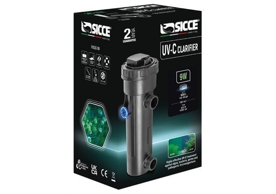 Για ενυδρεία 200 - 600 λίτραΟ καθαριστής UV-C είναι πλήρως βυθιζόμενος (IP68). Μπορεί να βυθιστεί απευθείας στη λίμνη ή στο sump του ενυδρείου. Διαθέτει διακόπτη ασφαλείας που απενεργοποιεί αυτόματα τη λάμπα UV-C κατά τη διάρκεια της συντήρησης. Το μικρό του μέγεθος τον καθιστά κατάλληλο για χρήση σε ενυδρεία, ενυδρεία για χελώνες και λίμνες.Περιλαμβάνει λάμπα UV-C. Ενδεικτική λυχνία για τη λάμπα UV-C.Καπάκι γρήγορου ανοίγματος για γρήγορη και εύκολη συντήρηση.Σωλήνας χαλαζία.SICCE UV-C CLARIFIER 7W 9W 13WΕξαιρετικά αποτελεσματική επεξεργασία UV-C κατά των φυκιών, των βακτηρίων, των μικροβίων και των παθογόνων μικροοργανισμών.Διακόπτης ασφαλείας που απενεργοποιεί αυτόματα τη λάμπα UV-C κατά τη συντήρηση.Πλήρως βυθιζόμενος, μπορεί να βυθιστεί απευθείας στη λίμνη ή το ενυδρείο ή να χρησιμοποιηθεί σε σειρά.Γρήγορη σύνδεση σε σειρά σε αντλίες και φίλτρα δοχείων χρησιμοποιώντας τα παρεχόμενα εξαρτήματα μαλακού σωλήνα.Συμπαγές μέγεθος, κατάλληλο για χρήση σε ενυδρεία, ενυδρεία χελωνών και λίμνες.2 ΧΡΟΝΙΑ ΕΓΓΥΗΣΗ εξαιρουμένης της παρεχόμενης λάμπας UV-C (διατίθεται ως ανταλλακτικό κατά την παραγγελία).