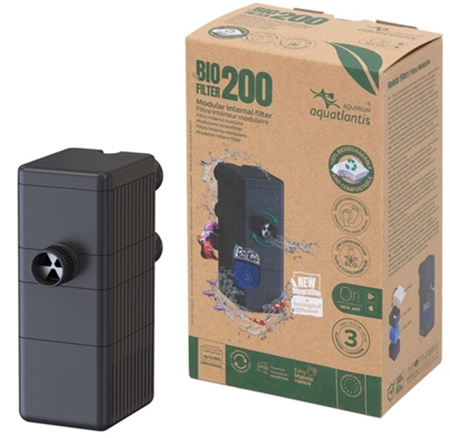 AQUATLANTIS BIO FILTER 200 Ο AQUATLANTIS BIO FILTER 200 είναι ένα καινοτόμο σύστημα βιολογικού φιλτραρίσματος σχεδιασμένο για να διατηρεί την καθαριότητα και την υγεία του ενυδρείου σας. Ιδανικό για ενυδρεία γλυκού και αλμυρού νερού, αυτό το φίλτρο προσφέρει αποτελεσματική και αξιόπιστη λειτουργία. Βασικά Χαρακτηριστικά Υψηλής απόδοσης βιολογικό φιλτράρισμα Εύκολη εγκατάσταση και συντήρηση Αθόρυβη λειτουργία Κατάλληλο για ενυδρεία έως 200 λίτρα Ενεργειακά αποδοτικό Ιδανικές Συνθήκες Χρήσης Θερμοκρασία νερού: 18-28°C pH: 6.5-8.0 Τακτικός έλεγχος και καθαρισμός κάθε 4-6 εβδομάδες Φροντίδα και Συντήρηση Ελέγχετε τακτικά την ροή του νερού Καθαρίστε ή αντικαταστήστε τα μέσα φιλτραρίσματος όπως απαιτείται Βεβαιωθείτε ότι το φίλτρο είναι πάντα βυθισμένο στο νερό κατά τη λειτουργία του Πιθανά Προβλήματα και Λύσεις Μειωμένη ροή νερού: Ελέγξτε για μπλοκαρίσματα ή καθαρίστε το φίλτρο Θόρυβος: Βεβαιωθείτε ότι το φίλτρο είναι σωστά τοποθετημένο και ότι δεν υπάρχουν αεροπαγίδες