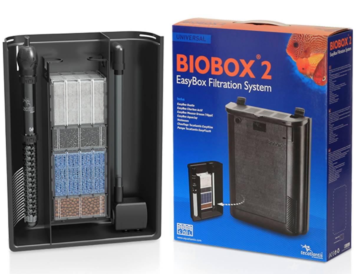 Βιοφίλτρα εσωτερικά ενυδρείων Πλήρες σύστημα φιλτραρίσματος για ενυδρεία μέχρι 250 λίτρα η οποία, χάρη στο σύστημα του φυσιγγίου φιλτραρίσματος EasyBox®, έχει άριστες βιολογικές, μηχανικές και χημικές ικανότητες φιλτραρίσματος. Εξασφαλίζει τον πλήρη καθαρισμό του νερού του ενυδρείου, την εξάλειψη των ρύπων των αποβλήτων που μπορεί να είναι επιβλαβής για τα ψάρια και τα φυτά. Η BIOBOX®2 περιλαμβάνει EasyFlux® 600 αντλία φίλτρο, μια θερμάστρα EasyKlim® 200W και τέσσερις EasyBox® ανταλλακτικά, σε μέγεθος S και L. Η συντήρηση του συστήματος φιλτραρίσματος είναι εξαιρετικά απλή και ασφαλής.Φυσίγγια Tecatlantis: 6 × EASYBOX LΗ 6,3 watt EasyFlux® 600 νερού λειτουργεί με μέγιστη ροή 650 L / h. Είναι εντελώς υποβρύχια και κατάλληλο τόσο για ενυδρεία γλυκού και θαλασσινού νερού ενυδρεία.Η θερμάστρα EasyKlim® 200W είναι 33 cm και είναι κατάλληλο για ενυδρεία με χωρητικότητα από 100 έως 200 λίτρα. Περιλαμβάνει συσκευή ρύθμισης της θερμοκρασίας και ενδεικτική λυχνία λειτουργίας. Είναι πλήρως υποβρύχια και είναι ιδιαίτερα ανθεκτικά.Το BIOBOX® 2 περιλαμβάνει τέσσερα ανταλλακτικά EasyBox®, δύο σε μέγεθος S και δύο σε μέγεθος L, τα οποία εξουδετερώνουν τις βλαβερές ουσίες που συσσωρεύονται στο νερό του ενυδρείου. Η EasyBox® Fiber L είναι ιδιαίτερα αποτελεσματικό ως προ-φίλτρο, συλλαμβάνοντας τα μικρότερα σωματίδια που ρυπαίνουν. Η EasyBox® Χοντρό Αφρός L επιφέρει έντονη διάσπαση των ρύπων, εξασφαλίζοντας καθαρό και καθαρό νερό. Η EasyBox® Aquaclay S είναι ένα φυσικό προϊόν με μια πορώδη επιφάνεια που επιφέρει άριστες συνθήκες για τον αποικισμό των βακτηρίων. Και EasyBox® ενεργού άνθρακα S απομακρύνει τα οργανικά απόβλητα διαλύονται στο νερό, άσχημες οσμές και τοξίνες μέσω χημικής απορρόφησης. Όλα τα ανταλλακτικά Tecatlantis έχουν μια εξαιρετικά αποτελεσματική δράση του φίλτρου.Αυτό το προϊόν περιλαμβάνει επίσης ένα βραχίονα στήριξης, ένα κάλυμμα για το κουτί του φίλτρου, άνω και κάτω υποδοχές για καλύτερο φιλτράρισμα, ένα σωλήνα αποχέτευσης, ένα στήριγμα για το καλοριφέρ και 5 βεντούζες για ασφαλή σύνδεση.διαστάσεις του φίλτρου (L × W × H): 280 × 90 × 364 χιλιοστάΑντλία Tecatlantis: EasyFlux® 600Θερμάστρα Tecatlantis: EasyKlim® 200WΦυσίγγια Tecatlantis: 2 × EasyComplete filtration system for aquariums up to 250 litres which, thanks to its EasyBox® filtering cartridge system, has excellent biological, mechanical and chemical filtration capacity. Ensures thorough cleaning of the aquarium water, eliminating waste pollutants that can be harmful to fish and plants. The BIOBOX®2 includes an EasyFlux® 600 filter pump, an EasyKlim® 200W heater and four EasyBox® refills, in size S and L. The maintenance of the filtration system is extremely simple and safe.00WCartridges Tecatlantis:6× EasyBox LThe 6.3 watt EasyFlux® 600 water works with a maximum flow of 650 L/h. It is completely submersible and suitable both for freshwater aquariums and seawater aquariums.The EasyKlim® 200W heater is 33 cm high and is suitable for aquariums with a capacity of 100 to 200 litres. Includes temperature adjusting device and power indicator. It is fully submersible and is highly resistant.The BIOBOX® 2 includes four EasyBox® refills, two in size S and two in size L, which eliminate harmful substances that accumulate in the aquarium water. The EasyBox® Fiber L is highly effective as a pre-filter, capturing the smaller polluting particles. The EasyBox® Coarse Foam L brings about intense decomposition of pollutants, ensuring clean and purified water. The EasyBox® Aquaclay S is a natural product with a porous surface that brings about excellent conditions for the colonisation of bacteria. And EasyBox® Activated Carbon S removes organic waste dissolved in the water, bad smells and toxins through chemical absorption. All Tecatlantis refills have an extremely effective filter action.This product also includes a mounting bracket, a cover for the filter box, upper and lower slots for better filtering, a drainage pipe, a bracket for the heater and 5 suction cups for secure attachment.Filter dimensions (L×W×H):280×90×364mmPump Tecatlantis:EasyFlux® 600Heater Tecatlantis:EasyKlim® 200WCartridges Tecatlantis:2×Easy