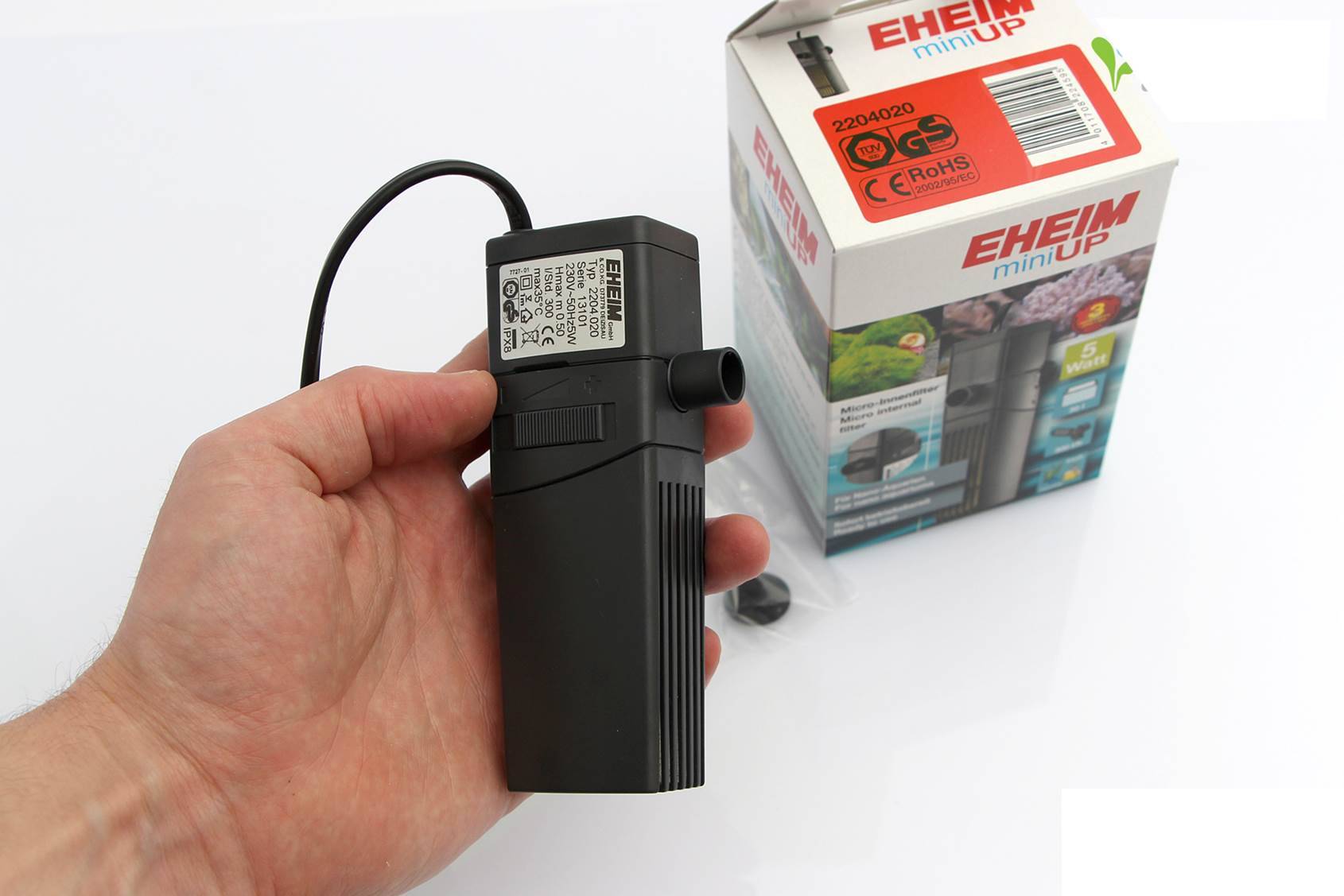 EHEIM miniUPΜίνι εσωτερικό φίλτρο για ενυδρεία (νανο-ενυδρεία) 25-30 LΕίναι μικρό, προσφέρει εξαιρετική απόδοση και είναι εύκολο να στηριχτεί με βεντούζες. Το φίλτρο απορροφά το νερό μέσα από τους αεραγωγούς, αντλίες μέσω του σφουγγαριού του φίλτρου και το στέλνει πιο πάνω, καθαρίζεται και επιστρέφει στο ενυδρείο. Μπορείτε επίσης να προσθέσετε μια μακρά σωλήνα για εκροή και να ρυθμίσετε την κατεύθυνση εκροής.Σχετική εικόνα• Χαμηλού προφίλ, λεπτή σχεδίαση• Η εξαγωγή νερού είναι στο μέτωπο του φίλτρου• Σύνδεση για εύκαμπτο σωλήνα κατάθλιψης• Πλήρως εξοπλισμένο με αρχική κασέτα φίλτρου EHEIM, έτοιμο για χρήση• Μόνο 5 Watt κατανάλωση ενέργειαςEHEIM miniUP  />ELEIM miniUPEAN 4011708224595Άρθρο αρ. 2204020UPC (-)Πλάτος 33,40 mmΎψος 128.00 mmΒάθος 54.00 mmΜήκος πίεσης σωλήνα Ø 13.00 mmτάση 230Τυπικό φις τροφοδοσίας EURΝωπά γλυκά νεράΘαλασσινό νερό ναι<img src=EHEIM FILTER IN MINI MICRO NANO UP TBV AQUARIAMini Internal filter for aquariums (nano-aquariums) 25 to 30 LIt is small, gives excellent performance and is easy to attach with suction cups. The filter sucks the water in through vents, pumps it through the filter sponge and sends it further up, cleaned, returned to the aquarium. You can also add an outflow long to adjust the outflow direction. />• Low-profile, slim design• Water intake in the front• Connection for discharge hose• Fully equipped with original EHEIM filter cartridge, ready for use• Only 5 Watt power consumption<img src=Αποτέλεσμα εικόνας για EHEIM 2204020