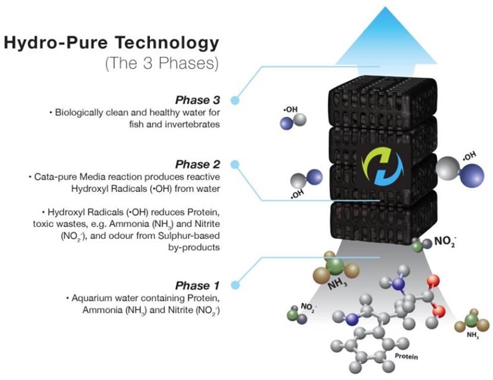 Η τεχνολογία Hydro-Pure είναι μια κατοχυρωμένη με δίπλωμα ευρεσιτεχνίας τεχνολογία αποτοξίνωσης και απομάκρυνσης νερού για εφαρμογές σε θαλάσσια και γλυκά νερά. Αποτελείται από δύο ηλεκτρομαγνήτες που ενεργοποιούν ένα κιβώτιο φυσιγγίων που περιέχει ειδικά Cata-Pure Catalyste μέσα για τη δημιουργία ισχυρών αντιδραστικών ριζών υδροξυλίου (ΟΗ-), το οποίο είναι το κλειδί της διαδικασίας αντίδρασης αποτοξίνωσης και αποξήρανσης.- Διαλύει πρωτεΐνες και θρεπτικά συστατικά- Απομονώστε αμμωνία (NH3) και Νιτρώδη (ΝΟ2)- Ελαχιστοποιήστε τη συχνότητα αλλαγής νερού- Μειώνει το ποσοστό θνησιμότητας των ψαριών διατηρώντας το ασφαλές και σταθερό παρθένο "υδρο-καθαρό νερό"- Ελαχιστοποιεί τη δυσάρεστη οσμή από το νερό του ενυδρείουΤα μέσα Cata-Pure μπορούν να χρησιμοποιηθούν συνεχώς για έως και 12 μήνες. Απαιτείται κανονικό διάστημα πλύσης και έκπλυσης για την απομάκρυνση της βρωμιάς μέσα στο φυσίγγιο. Αντικαταστήστε τις κασέτες μετά από κάθε 12 μήνες για μέγιστη απόδοση.Για δεξαμενές μεταξύ 100-200 L (600 l / h)Σχετική εικόνα  />Hydro-Pure Technology is a patented water detoxifying and depurating technology for applications in both marine and freshwater. It consists of two electro-plates to energize a cartridge box containing special Cata-Pure Catalyste Media to generate strong reactive Hydroxyl (OH-) radicals, which is the key to the detoxifying and depurating reaction process.- Breaks down protein and nutrients- Detoxify ammonia (NH3) and Nitrite (NO2)- Minimize frequency of water change- Reduces martality rate of fish by maintaining safe and stable pristine
