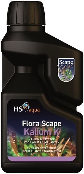 Το HS aqua Flora Scape Potassium K είναι ένα λίπασμα καλίου για φυτά σε ενυδρεία γλυκού νερού.Το κάλιο είναι ένα από τα μακροστοιχεία.Μικρές τρύπες με μαύρα ή κίτρινα περιθώρια στα φύλλα των φυτών, που αργότερα γίνονται μεγάλες τρύπες, υποδηλώνουν έλλειψη καλίου.Η ανάπτυξη επίσης μειώνεται όταν υπάρχει πολύ λίγο κάλιο.Οι ιδανικές τιμές για ένα ενυδρείο είναι μεταξύ 5 και 10 mg/l.Το HS aqua Flora Scape Potassium K είναι ιδανικό για ενυδρεία τύπου aquascaping, ενυδρεία με πολλά φυτά και λίγα ψάρια, καθώς και για ενυδρεία με φωτισμό LED.Δεν περιέχει φωσφορικά και νιτρικά και είναι ασφαλές για χρήση με γαρίδες και διακοσμητικά σαλιγκάρια.Δοσολογία: Η δοσολογία εξαρτάται από τις υπάρχουσες και επιθυμητές τιμές του νερού:10 ml αυξάνουν την περιεκτικότητα σε κάλιο σε 100 λίτρα νερού περίπου κατά 4 mg/l.Για να προσδιοριστεί η συγκεκριμένη κατανάλωση σε ένα ενυδρείο, είναι καλύτερο να μετρηθεί πρώτα η περιεκτικότητα σε κάλιο και στη συνέχεια να δοσολογηθεί η απαιτούμενη ποσότητα HS aqua Flora Scape Potassium K μέχρι να επιτευχθεί η επιθυμητή τιμή.Παράδειγμα:Το ενυδρείο έχει 70 λίτρα, η μετρημένη περιεκτικότητα σε κάλιο είναι 5 mg/l και η επιθυμητή τιμή είναι 15 mg/l.Φόρμουλα:(desired value – measured value) * number of liters of water * 10 ml / (100 l * 0.5 mg/l) ((15 mg/l – 5 mg/l) * 70 l * 10 ml)/(100 l * 4 mg/l) = 17.5 mlΗ δοσολογία για αυτό το παράδειγμα είναι 17,5 ml για να αυξηθεί το επίπεδο καλίου από 5 mg/l σε 15 mg/l σε 70 λίτρα νερού.Επειδή η χρήση κάθε ενυδρείου είναι διαφορετική, συνιστάται να μετράτε τακτικά τα επίπεδα καλίου και να ρυθμίζετε τη δοσολογία σταδιακά.Όταν οι τιμές αυξάνονται, σημαίνει ότι δοσολογείται πολύ, ενώ αν μειώνονται, μπορεί να αυξηθεί λίγο η δοσολογία για να διατηρηθεί η βέλτιστη τιμή σταθερή.Οι ιδανικές τιμές για ένα φυτεμένο ενυδρείο είναι:Κάλιο (K): 7–20 mg/l