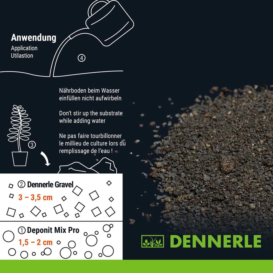 Το Deponit Mix είναι ένα πλούσιο σε χούμο, μακροπρόθεσμο θρεπτικό μέσο ορυκτών που αναπτύχθηκε ειδικά για ενυδρεία και βασίζεται σε εκτενή γνώση των φυσικών οικοτόπων δημοφιλών υδρόβιων φυτών.Πολυμεταλλικό θρεπτικό μέσο: Βέλτιστη παροχή των φυτών με όλα τα θρεπτικά συστατικά που χρειάζονται χάρη σε ένα ισχυρό, ευρέως διακλαδισμένο υποκείμενο.Χωρίς πρόσθετα φωσφορικά και νιτρικά άλατα: αποφυγή υπερβολικής ανάπτυξης φυκιών.Μακροχρόνια εμπειρία: Αποτελεσματική πρόληψη της πανώλης των φυκιών.Ρύθμιση θρεπτικών συστατικών: Ο συνδυασμός θρεπτικού σιδήρου αποθήκης, ιχνοστοιχείων και ορυκτών αργίλου εξασφαλίζει πάντα τη σωστή ποσότητα θρεπτικών συστατικών.Φυσική τύρφη πλούσια σε ούμινο: Ελαφρώς οξινo αποτέλεσμα που κάνει τα φυτικά θρεπτικά συστατικά πιο διαθέσιμα.Δραστικά συστατικά: Τα ορυκτά αργίλου, οι ουσίες χούμου και τα βακτήρια του εδάφους είναι ήδη ενεργά όταν υγραίνονται ελαφρά. Τα βακτήρια τροφοδοτούνται με οξυγόνο μέσω των δύο οπών στο καπάκι.Ενεργοποιητικά σφαιρίδια: Τα λευκά σφαιρίδια ενεργοποιητή εξασφαλίζουν πλήρη ισχύ μικροοργανισμών από την αρχή.