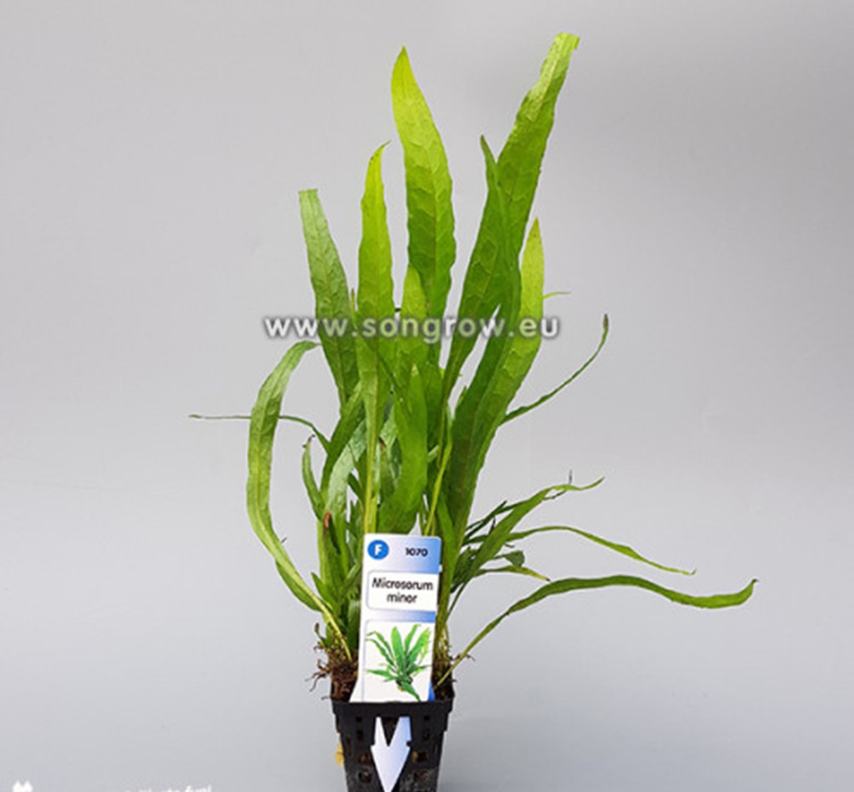 ΖΩΝΤΑΝΑ ΦΥΤΑ ΕΝΥΔΡΕΙΟΥ, Microsorum minor (thin leaves) Τα ζωντανά φυτά ενυδρείου Microsorum minor, γνωστά και ως "thin leaves", αποτελούν μια εξαιρετική επιλογή για τους λάτρεις των ενυδρείων που επιθυμούν να προσθέσουν μια φυσική και ζωντανή αίσθηση στο υδάτινο περιβάλλον τους. Αυτά τα φυτά, με τον κωδικό EAN 8718076001570, είναι γνωστά για τα λεπτά, κομψά φύλλα τους, τα οποία προσφέρουν μοναδική αισθητική και υγιεινό περιβάλλον για τα ψάρια σας. Το Microsorum minor προέρχεται από τις τροπικές περιοχές της Ασίας, όπου αναπτύσσεται σε ρέματα και ποτάμια. Τα φυτά αυτά είναι ιδανικά για ενυδρεία γλυκού νερού και μπορούν να προσφέρουν καταφύγιο και σκιά για τα ευαίσθητα ψάρια και άλλα υδρόβια πλάσματα. Χαρακτηριστικά και Ιδιότητες Ύψος: Φτάνει τα 15-30 cm ανάλογα με τις συνθήκες. Φύλλα: Λεπτά και μακρόστενα, με έντονο πράσινο χρώμα. Αναπτύσσεται καλύτερα σε συνθήκες χαμηλού έως μέτριου φωτισμού. Δεν απαιτεί CO2, αλλά μπορεί να ωφεληθεί από την προσθήκη του. Ιδανικές Συνθήκες Χρήσης Θερμοκρασία νερού: 18-28°C. Ρύθμιση pH: 5.5-7.5. Ανθεκτικό σε διαφορετικά επίπεδα σκληρότητας του νερού. Οδηγίες Χρήσης και Φροντίδας Φυτέψτε το σε χαλαρό υπόστρωμα ή δέστε το σε διακοσμητικά ενυδρείου όπως πέτρες ή ξύλα. Αποφύγετε το φύτεμα σε πολύ πυκνά υποστρώματα για να επιτρέψετε την καλή κυκλοφορία του νερού. Περιοδικό κλάδεμα των φύλλων για να διατηρήσετε την υγιή ανάπτυξη. Ασθένειες και Προβλήματα Αν και γενικά ανθεκτικό, μπορεί να υποφέρει από κιτρίνισμα των φύλλων λόγω έλλειψης θρεπτικών συστατικών. Πιθανή ανάπτυξη φυκών στις επιφάνειες των φύλλων σε περιπτώσεις υπερβολικού φωτισμού ή ανεπαρκούς ροής νερού. Τα ζωντανά φυτά ενυδρείου Microsorum minor προσφέρουν μια εξαιρετική δυνατότητα για τη δημιουργία ενός όμορφου και υγιούς περιβάλλοντος για τα ψάρια σας, ενώ συγχρόνως συμβάλλουν στη βελτίωση της ποιότητας του νερού στο ενυδρείο σας.