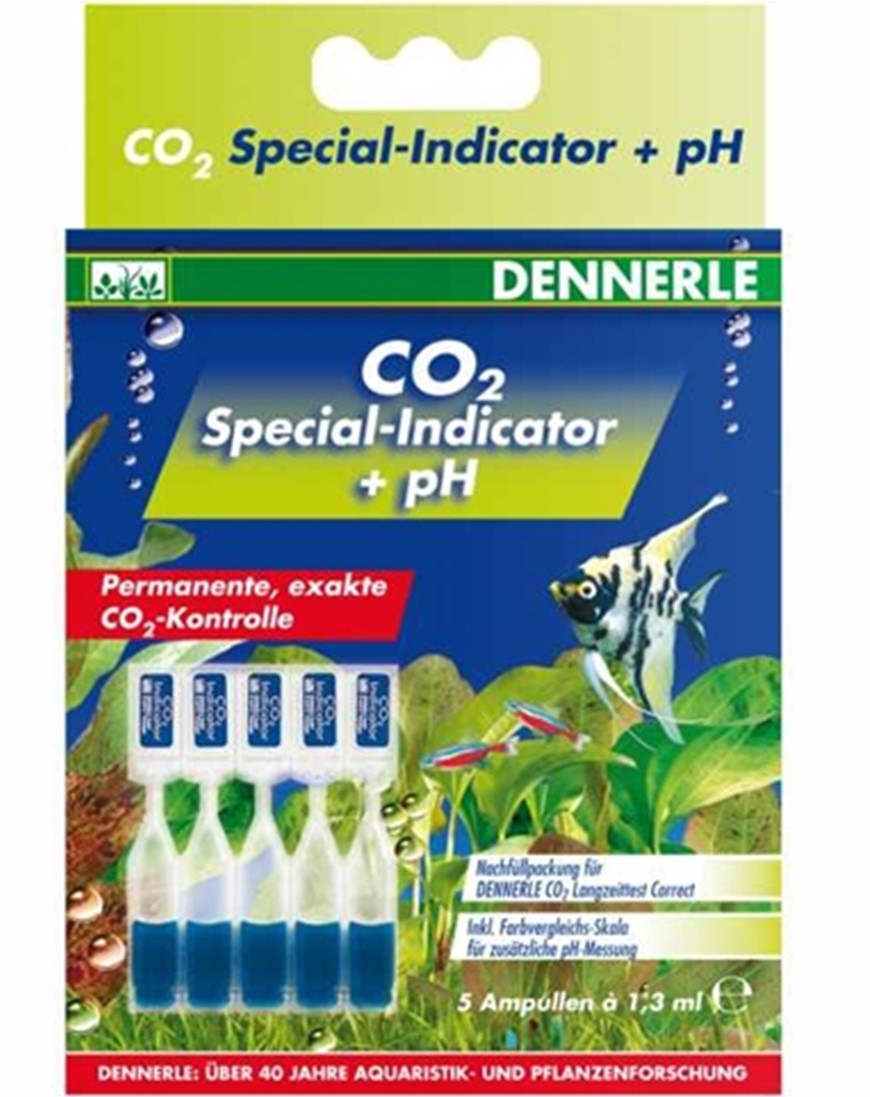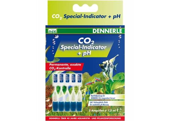 Οι συμβατικές μακροπρόθεσμες δοκιμές CO2 γεμίζουν με ένα μείγμα νερού ενυδρείου και δείκτη. Αυτό συνεπάγεται διάφορα μειονεκτήματα, ένα από τα οποία τα οξέα που υπάρχουν σε όλα τα νερά του ενυδρείου μπορούν να οδηγήσουν σε εσφαλμένα αποτελέσματα δοκιμών. Η μακροπρόθεσμη δοκιμή Dennerle CO2 Correct χρησιμοποιεί έναν έτοιμο προς χρήση ειδικό δείκτη CO2 που χρησιμοποιείται από μόνο του, και όχι σε μείγμα με νερό ενυδρείου. Εκτός από τη συγκέντρωση CO2, η τιμή του pH μπορεί επίσης να εμφανιστεί σε κλίμακα 6 χρωμάτων.Conventional long-term CO2 tests are filled with a mixture of aquarium water and indicator. This involves various disadvantages, one being that the acids which are present in all aquarium waters can lead to incorrect test results. The Dennerle CO2 long-term test Correct employs a ready-to-use special CO2 indicator which is used on its own, rather than in a mixture with aquarium water. In addition to the CO2 concentration, the pH value can also be displayed on a 6-colour scale.