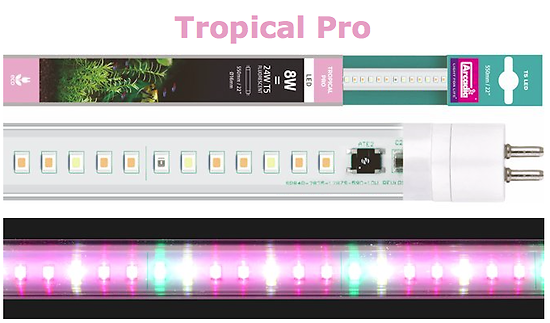 Οι λαμπτήρες Led T5 χρησιμοποιούνται για την αντικατάσταση των λαμπτήρων φθορισμού T5 ίδιου μεγέθους. Μια λυχνία LED T5 χρησιμοποιεί 1/3 ηλεκτρικής ενέργειας που παράγει διπλάσιο φως σε σύγκριση με τους λαμπτήρες φθορισμού. Προσθέτουν ένα εφέ κυματισμού. Ακόμη και μία λυχνία LED T5 κάνει τη διαφορά. Ο λαμπτήρας στρέψης περιστρέφεται για να κατευθύνει σωστά το φως.Tropical Pro T5 Led:- Ζεστό τροπικό χρώμα- Ιδανικό για aquascaping- Ισχυρός διεισδυτικός λαμπτήρας ιδανικός για ανάπτυξη φυτών- Επισημαίνει τονίζοντας κόκκινα και μπλε χρώματα- λαμπτήρες με ενεργειακή απόδοση (καταναλώνουν το 1/3 της ηλεκτρικής ενέργειας που απαιτείται για τους παραδοσιακούς λαμπτήρες φθορισμού)- δεν αυξάνουν τη θερμοκρασία του νερού στη δεξαμενή- πολύ μεγάλη διάρκεια ζωής (έως 50 000 ώρες λειτουργίας χωρίς την ανάγκη αντικατάστασης)The T5 Led lamps are used to replace T5 fluorescent lamps of the same size. A T5 Led lamp uses 1/3 electricity producing double the light compared to fluorescent lamps. They add a ripple effect. Even one T5 Led lamp makes a difference. Lampholder rotates to direct light correctly.Tropical Pro T5 Led:- Warm tropical colour- Ideal for aquascaping- Powerfull penetrating lamp ideal for plant growth- Accentuates reds and blues- energy efficiency led lamps (they consume 1/3 the electricity required for traditional fluorescent lamps)- they do not increase water temperature in the tank- very long life (up to 50 000 hours of operation without the need to replace)