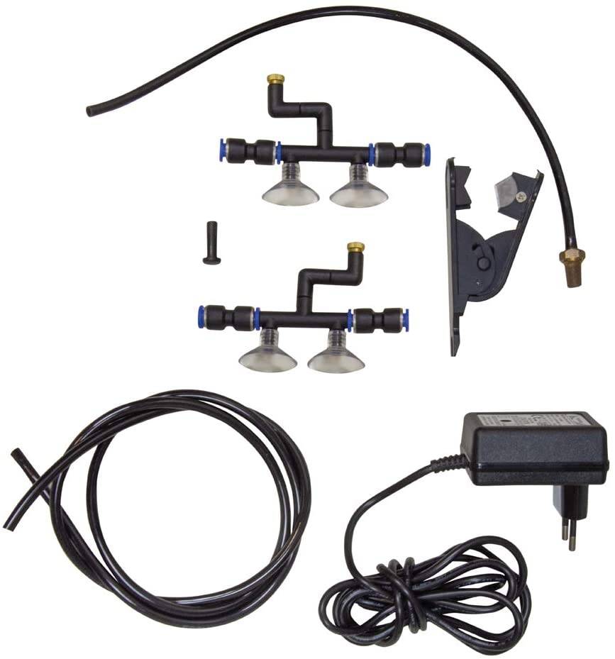 />Hobby Easy Rain:Εύκολη βροχήΡυθμιζόμενο σύστημα καταιωνιστήρων για τα terrariums (αρ. Αριθ.: 37293)<img src=Περιγραφή προϊόντος Το Easy Rain είναι ένα σύγχρονο και αξιόπιστο σύστημα άρδευσης υψηλής απόδοσης.Ιδανικά κατάλληλο για την παροχή της απαραίτητης υγρασίας στο terrarium σας, στους κατοίκους και στα φυτά του. Η μεγάλη δεξαμενή νερού χωρητικότητας 9 λίτρων είναι επίσης επαρκής για την υγρασία μεγαλύτερων εδαφών ή μικρότερων θερμοκηπίων για συνεχή λειτουργία για αρκετές ημέρες. Και η δεξαμενή νερού μπορεί απλά να γεμίσει από ψηλά μέσω ανοίγματος χωρίς να ανοίξει το σύστημα ψεκαστήρα. Το Easy Rain μπορεί να επεκταθεί σε έως και 6 ακροφύσια. Έτσι, μπορείτε να προμηθεύσετε ταυτόχρονα πολλά εδάφη με υγρασία. Μπορείτε να προσαρμόσετε τη διάρκεια του ψεκασμού και τα διαστήματα ψεκασμού ξεχωριστά στις ανάγκες σας. Για μικρότερα εδάφη, η αντοχή του ψεκασμού μπορεί να ρυθμιστεί εύκολα, ώστε να μην βρέχει πάρα πολύ. Τα περιεχόμενα ακροφύσια ψεκασμού ψεκάζουν το νερό σε μια λεπτή ομίχλη ψεκασμού όπως στη φύση. Με αυτόν τον τρόπο μπορείτε να επιτύχετε εύκολα την επιθυμητή υγρασία στο terrarium σας.Αυτό διεγείρει τη ζωτικότητα των τροπικών κατοίκων και προωθεί τη συμπεριφορά αναπαραγωγής τους. Το σωστό κλίμα terrarium παίζει επίσης σημαντικό ρόλο στην ανάπτυξη φυτών terarium όπως βρύα, βρωμιάδες ή ορχιδέες. Με το Easy Rain δημιουργείτε ΤΟ τέλειο κλίμα στο terrarium σας!Συμπεριλαμβάνεται κόπτης σωλήνα / σωλήνας πίεσης 5,5 m 4/6 mm / λεπτό φίλτρο / 2 ακροφύσια ψεκασμού / τελικό κομμάτι / δεξαμενή νερού 9 λίτρων Hobby Easy Rain Sprühdüse | Reptilienkosmos.de – Die schönsten Seiten der  TerraristikΠλεονεκτήματα προϊόντος με μια ματιά:• Αξιόπιστο σύστημα άρδευσης υψηλής απόδοσης για terrariums και μικρότερα θερμοκήπια• Μεγάλη δεξαμενή νερού χωρητικότητας 9 λίτρων• Μπορεί να γεμίσει από ψηλά χωρίς να χρειάζεται να ανοίξετε το σύστημα ψεκαστήρα• Εύκολο στη χρήση: η διάρκεια του ψεκασμού, τα διαστήματα ψεκασμού και η αντοχή του ψεκασμού μπορούν να προσαρμοστούν ξεχωριστά στις ανάγκες των ζώων• Εύκολη εγκατάσταση με ένα απλό σύστημα κλικ• συμπ. 2 υψηλής ποιότητας και εύκαμπτα ακροφύσια ψεκασμού• επεκτάσιμα έως και 6 ακροφύσια ψεκασμού (προαιρετικά διαθέσιμα)• Συμπεριλαμβάνεται σωλήνας πίεσης 5,5 m (4/6 mm) για μεμονωμένη εγκατάσταση των ακροφυσίων ψεκασμού• Συμπεριλαμβάνεται κόφτης σωλήνων για άμεση εγκατάσταση Zoo-Boutique Stahnsdorf - Hobby Easy Rain Beregnungsanlage mit 9 L  Wasserbehälter />Τεχνικές προδιαγραφές:Διαστάσεις: 23 cm x 23 cm x 38 cmΒάρος: 2,4 κιλάΤάση εισόδου: AC 100-240 V - 50/60 Hz - 0,4 AΤάση εξόδου: DC 12 V - 2 AΡΟΗ: ελάχ. 0,9 l / m - μέγ. 1,4 l / mΤΥΠΟΣ: μέγ. 50 PSI<img src=Easy RainAdjustable sprinkler system for terrariums (Art.-No .: 37293)Product description The Easy Rain is a modern and reliable high-performance irrigation system.Ideally suited to supply your terrarium and its inhabitants and plants with the necessary moisture. The large water reservoir with a capacity of 9 liters is also sufficient for humidifying larger terrariums or smaller greenhouses for continuous operation over several days. And the water reservoir can simply be filled from above through an opening without opening the sprinkler system. The Easy Rain can be expanded to up to 6 nozzles. So you can supply several terrariums with moisture at the same time. You can adapt the spray duration and the spray intervals individually to your needs. For smaller terrariums, the spray strength can even be easily adjusted so that it doesn't rain too much. The contained spray nozzles atomize the water into a fine spray mist like in nature. In this way you can effortlessly achieve the desired humidity in your terrarium.This stimulates the vitality of the tropical inhabitants and promotes their breeding behavior. The right terrarium climate also plays a major role in the growth of terrarium plants such as mosses, bromeliads or orchids. With the Easy Rain you create THE perfect climate in your terrarium!Including hose cutter / 5.5 m pressure hose 4/6 mm / fine filter / 2 spray nozzles / end piece / 9 liter water reservoir  />Product advantages at a glance:• Reliable high-performance irrigation system for terrariums an