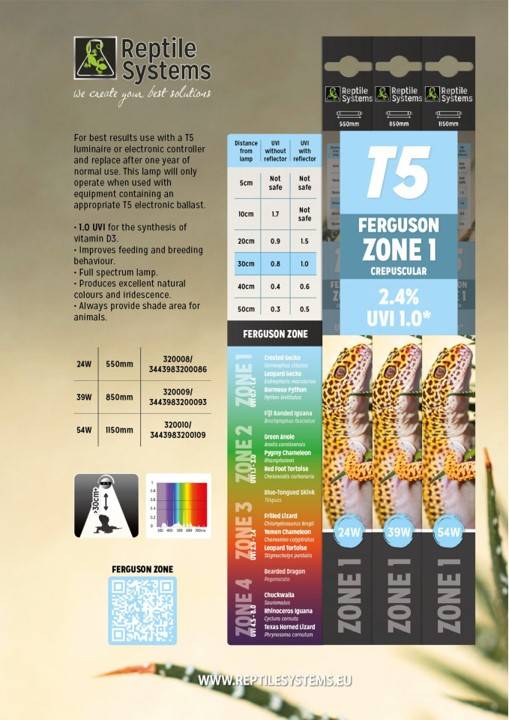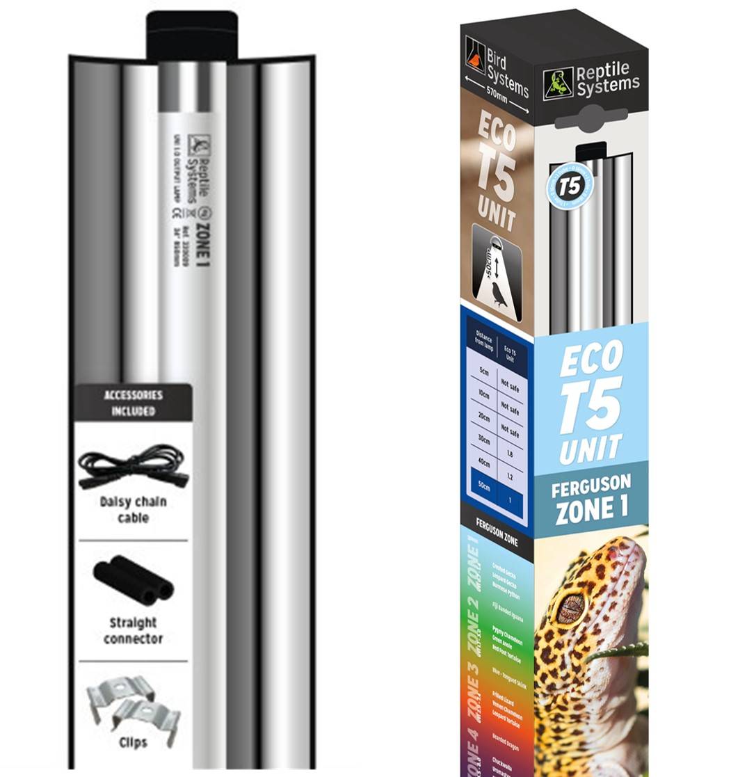 Terrarium Heating Guide 101 – Pisces Pet Emporium  />Ερπετά συστήματα Eco T5 - Ζώνη 1Το Reptile Systems Eco T5 είναι ένα σύνολο σε μία μονάδα σχεδιασμένο να παρέχει γρήγορα και εύκολα στα ερπετά σας μια πηγή φωτός υψηλής ποιότητας για να καλύψει τις ανάγκες UVB τους. Είναι εξίσου κατάλληλο για εγκατάσταση μέσα σε ένα ξύλινο βιβάρι ή στο πάνω μέρος του πλέγματος των περισσότερων terrariums *Περιεχόμενα κιτΛάμπα T5 υψηλής ερπετολογίας συστημάτων ζώνης 1Αξιόπιστο τρεμόπαιγμα, όλα σε ένα στυλ έρμα με εγγύηση 2 ετώνΑφαιρούμενος ανακλαστήρας υψηλής ποιότητας.Όλα τα απαραίτητα εξαρτήματαΚαλώδιο ρεύματος<img src= Έξοδος UV ζώνης 1 σε διαφορετικές αποστάσεις από τη λάμπα.Λιγότερο από 30 εκατοστά = Δεν συνιστάται30cm = UVI 1.840cm = UVI 1.250cm = UVI 1.0Reptile Systems Eco T5 24w Zone 1 | Buzzard Reptile  Κατά την εγκατάσταση, στοχεύετε πάντα στην παροχή διαβάθμισης UV με αποχρωματισμό και σκιασμένες περιοχές. Εάν εγκαθιστάτε σε μεγαλύτερες αποστάσεις, ίσως προτιμάτε να δείτε το Reptile Systems Eco T5 Unit Zone 2 ή Reptile Systems Eco T5 Unit Zone 3 για να επιτύχετε τον σωστό δείκτη UV.* εάν εγκαταστήσετε πάνω από το πλέγμα αυτό μπορεί να μειώσει τον δείκτη υπεριώδους ακτινοβολίας, οπότε θα πρέπει να λαμβάνεται υπόψη κατά τη ρύθμιση του περιβλήματος σαςΛάμπες συμβατότητας και αντικατάστασηςΗ παρεχόμενη λυχνία Reptile Systems T5 χρειάζεται μόνο αντικατάσταση σε ετήσια βάση, καθιστώντας τη μία από τις λαμπτήρες μεγαλύτερης διάρκειας στην αγορά, είναι επίσης μια τυπική λάμπα μεγέθους που σημαίνει ότι ποτέ δεν θα κλειδώσετε μια μάρκα στο μέλλον.An Introduction to the Reptile Systems Company | Reptile Centre />Ζώνη FergusonΘέλουμε να αλλάξουμε τον τρόπο με τον οποίο η βιομηχανία ερπετών εξετάζει την παροχή UVB και UVA για τα ερπετά μας. Αυτή είναι η γενναία ιδέα που θέλαμε να εφαρμόσουμε για λίγο, και η έναρξη της νέας γενιάς των λαμπτήρων φθορισμού T8 και T5 μας έδωσε την ευκαιρία να μεταφέρουμε το όραμά μας στη συσκευασία των προϊόντων UV μας. Αυτός ο τρόπος σκέψης έχει εξελιχθεί επειδή τα Reptile Systems, αν και αρκετά σχετικά νέα μάρκα, μας επέτρεψαν να ξεκινήσουμε εκ νέου με την προσέγγισή μας στον τρόπο εμφάνισης της ποσότητας υπεριώδους (UV) στη συσκευασία μας. Η συσκευασία για λαμπτήρες υπεριώδους ακτινοβολίας, μέχρι στιγμής, ήταν ευθεία προς τα εμπρός, και συνήθως ακολουθείται η λέξη φως της ημέρας, δάσος ή έρημος με ποσοστό.Οι κάτοχοι ερπετών αγοράζουν λαμπτήρες, με βάση αυτό το αναφερόμενο ποσοστό, για πολλά χρόνια, με λιγότερο από 2,5% να είναι φως της ημέρας, 5% ή 6% δάσος και 10% ή 12% έρημο. Τι σημαίνει αυτό το ποσοστό; Σχετίζεται με την ποσότητα των φωσφορικών UVB στους λαμπτήρες, έτσι τυπικά οι αναφερόμενες τιμές θα ήταν 10% UVB, 30% UVA και οι υπόλοιπες θα αποτελούσαν ένα μείγμα ορατού φωτός.Το ποσοστό που βλέπουμε απεικονίζεται στη συσκευασία λαμπτήρων UV ερπετών και φθορισμού πουλιών, αν και μπορεί να ήταν σωστό πριν από πολλά χρόνια, σίγουρα δεν είναι τώρα, λόγω των σημερινών υψηλότερων λαμπτήρων εξόδου.Ο τρόπος με τον οποίο διατηρούμε τα ερπετά μας έχει αλλάξει δραματικά την τελευταία δεκαετία, με μεγαλύτερη σημασία στην παροχή σωστών περιβαλλοντικών αναγκών. Το μέγεθος και το σχήμα του περιβλήματος, η θερμοκρασία, το φως και η σωστή ποσότητα UV έχουν διαδραματίσει σημαντικό ρόλο σε αυτήν την επανάσταση.Ποια είδη επωφελούνται από την πρόσβαση στο UV;Η απλή απάντηση είναι - όλα τα ζώα που ζουν έξω και έχουν κάποια πρόσβαση σε άμεση ή έμμεση έκθεση στον ήλιο. Εκτός αν ζουν σε μια σκοτεινή σπηλιά, ή περάσουν όλες εκτός 