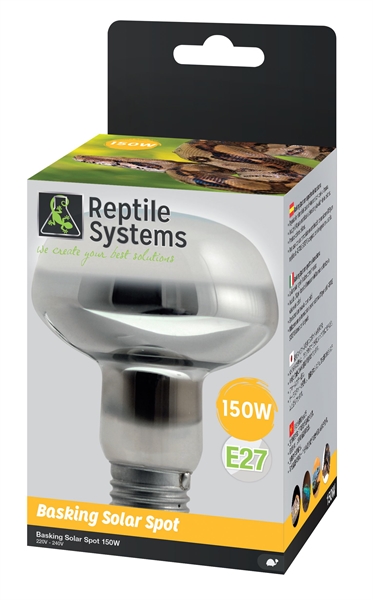 Οι λαμπτήρες Reptile Systems Basking Solar Spot χρησιμοποιούν εξάρτημα ES (βίδα) και έχουν σχεδιαστεί για να παρέχουν στο ερπετό σας αξιόπιστη πηγή θερμότητας και φωτός για την υγεία και την ευημερία τους.Στα ερπετά αρέσουν τα ζεστά πράγματα, αφού έχουν εξελιχθεί σε κλίματα πολύ πιο ζεστά από το Ηνωμένο Βασίλειο. Ένας από τους καλύτερους τρόπους για να τα διατηρήσετε υγιή είναι να διασφαλίσετε ότι το περιβάλλον τους είναι ηλιόλουστο και ζεστό και μπορείτε να το κάνετε αυτό εύκολα με μια λάμπα Reptile Systems Basking Solar Spot.Η ανακλαστική επίστρωση γύρω από τις πλευρές του λαμπτήρα σημαίνει ότι η δέσμη φωτός είναι σημαντικά πιο στενή από τους περισσότερους άλλους λαμπτήρες spot - περισσότερο σαν το "Spot Light" στο θέατρο - έντονη και επικεντρωμένη σε ένα σημείο στο οποίο μπορεί να κινείται το ερπετό σας εάν αισθάνεται λίγο κρύο.Ρύθμιση θερμότητας με βάση τη φύση κάνοντας ηλιοθεραπεία κάτω από τη λάμπα.Περιλαμβάνει UVA για ευεξία και χρωματική όραση.Έξοδος ζεστού χρώματος.Χρησιμοποιήστε το με θερμοστάτη και μαζί με το κατάλληλο είδος σύστημα UVB REPTILE SYSTEMS. The Reptile Systems Basking Solar Spot lamps use an ES (screw) fitting and are designed to provide your reptile with a reliable source of both heat and light for their health and well-being.Reptiles like things hot, having evolved in climates much warmer than the UK. One of the best ways to keep them healthy is to ensure their environment feels both sunny and warm and you can do this easily with a Reptile Systems Basking Solar Spot lamp.The reflective coating around the sides of the bulb means that the light beam is considerably narrower than most other spot lamps - more like the 'Spot Light' at the theatre - intense and focused on one spot which your reptile can move under should they be feeling a little chilly.Warmth regulation modelled on nature by sunbathing under the lamp.Includes UVA to aid well-being and colour vision.Warm colour output.Use with a thermostat and alongside a species appropriate REPTILE SYSTEMS UVB system.