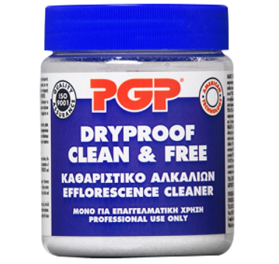 CLEAN & FREEΠροετοιμάζει όλων των ειδών τις δομικές επιφάνειες (τσιμέντο, σοφά, τσιμεντόλιθο, κεραμικά) καθώς και μεταλλικές γαλβανισμένες επιφάνειες για βαφή.Το CLEAN & FREE είναι καθαριστικό σε μορφή σκόνης. Ελευθερώνει τους πόρους δομικών επιφανειών από σκόνες, σαθρά, αλκάλια και μούχλα και αφήνει μια καθαρή επιφάνεια έτοιμη για βαφή.ΟΔΗΓΙΕΣ ΧΡΗΣΗΣ: Διαλύουμε το περιεχόμενο μιας φιάλης σε 5 κιλά χλιαρό νερό. Απλώνουμε το διάλυμα στην επιφάνεια με μία σκληρή βούρτσα. Αφήνουμε το υλικό να δράσει για 15 λεπτά και πριν προλάβει να στεγνώσει ξεπλένουμε την επιφάνεια με άφθονο νερό. Επισημαίνουμε την προσοχή σας στο ότι το υλικό είναι καυστικό και συνιστάται η χρήση γαντιών.ΑΠΟΔΟΣΗ: Μία φιάλη ανά 25-30m2 ανάλογα με την απορροφητικότητα της επιφάνειας. ΜΟΝΩΤΙΚΑ-DRYPROOF