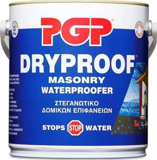 PGP DRYPROOF ΔΙΑΛΥΤΟΥ ΤΣΙΜΕΝΤΟΕΙΔΕΣ ΜΟΝΩΤΙΚΟ ΓΙΑ ΟΛΕΣ ΤΗΣ ΕΠΙΦΑΝΕΙΕΣ ΙΔΑΝΙΚΟ ΓΙΑ ΥΠΟΓΕΙΑ, ΤΑΡΑΤΣΕΣ, ΠΙΣΙΝΕΣTο DRYPROOF MASONRY WATERPROOFER είναι τσιμεντοειδές στεγανωτικό χρώμα, έτοιμο προς χρήση, για δομικές επιφάνειες που χρειάζονται αποτελεσματική προστασία από την υγρασία ακόμα και όταν υπάρχουν αρνητικές πιέσεις.Στεγανοποιεί δομικές επιφάνειες καθαρές από χρώματα, στεγανωτικά, σαθρά, σκόνες, αλκάλια κ.α. που βρίσκονται σε εσωτερικό ή εξωτερικό χώρο, πάνω ή κάτω από την επιφάνεια του εδάφους. Για παράδειγμα, υπόγεια, πισίνες, ταράτσες, δεξαμενές, πιλοτές, γκαράζ, βορεινούς τοίχους, φρεάτια, κ.λπ.  ΟΔΗΓΙΕΣ ΧΡΗΣΗΣ: Η χρήση του DRYPROOF MASONRY WATERPROOFER προυποθέτει γερή και καθαρή από άλλα υλικά επιφάνεια καθώςαι καλό ανακάτεμα. Καθαρίστε καλά την επιφάνεια από σαθρά υπολείμματα. Πλύνετε προσεκτικά την επιφάνεια με CLEAN & FREE για να καθαριστεί από αλκάλια, σκόνες και μικροοργανισμούς. Σφραγίστε αδύναμα σημεία της επιφάνειας (αρμούς, ρωγμές, και τρύπες) με ειδικό υδραυλικό τσιμέντο ταχείας πήξεως. Περάστε το υλικό στην επιφάνεια με φαρδύ, σκληρό πινέλο για να δουλευτεί καλά μέσα στους πόρους της επιφάνειας. Το δεύτερο χέρι μπορεί να περαστεί την επόμενη μέρα. ΠΡΟΣΟΧΗ ΔΕΝ ΑΡΑΙΩΝΕΤΑΙ.ΑΠΟΔΟΣΗ: Ανάλογα με την απορροφητικότητα της επιφάνειας καλύπτει 5-8 m2/3lt.Συσκευασία: 1kg, 3kg, 15kg, 25kg. ΜΟΝΩΤΙΚΑ-DRYPROOF
