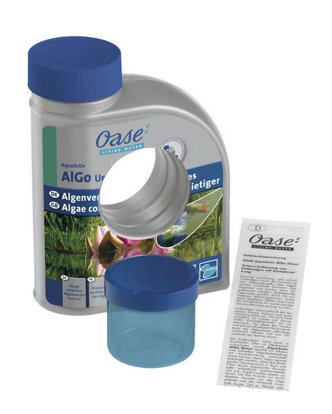 Oase AquaActiv AlGo Universal 50542 Algae Remover 500 ml: Amazon.co.uk:  Garden & OutdoorsΚαταστροφέας φυκών Oase AquaActiv AlGo Universal, 500 mlΟ καταστροφέας φυκών Oase AlGo Universal καταπολεμά αξιόπιστα τους πιο συνηθισμένους τύπους αλγών όπως νήμα, επιχρίσματα και καφέ φύκια. Αναστέλλει το μεταβολισμό τους και μειώνει τον νέο σχηματισμό.Περιεχόμενα: 500 ml (επαρκές για όγκο λίμνης 10 m³)Βέλτιστος χρόνος εφαρμογής: Απρίλιος έως Σεπτέμβριος />Για οξεία θεραπεία με φύκιαΣυμβατό με φυτά και ζώαΛειτουργεί σε ολόκληρο το νερό της λίμνηςΚαθολική θεραπεία φυκώνΑποτελεσματικά αποτελεσματικό έναντι των πιο συχνά εμφανιζόμενων τύπων φυκών, όπως τα φύκια χορδών ή τα καφέ φύκιαΑναστέλλει το μεταβολισμό των φυκώνΜειώνει τη δημιουργία νέων φυκώνΧρησιμοποιήστε προσεκτικά τα βιοκτόνα. Πάντα να διαβάζετε την ετικέτα και τις πληροφορίες προϊόντος πριν από τη χρήση!Αναστέλλει τη φωτοσύνθεση των αλγών - των φυκών που λιμοκτονούν<img src=Algo Direct 500 ml Likwidator glonów nitkowatychOase algae destroyer AquaActiv AlGo Universal, 500 mlThe algae destroyer Oase AlGo Universal reliably combats the most common types of algae such as thread, smear and brown algae. It inhibits their metabolism and reduces new formation.Contents: 500 ml (sufficient for 10 m³ pond volume)Optimal application time: April to SeptemberFor acute algae treatmentCompatible with plants and animalsWorks in the entire pond waterUniversal algae remedy Safely effective against the most frequently occurring algae types, such as string algae or brown algaeInhibits algal metabolismReduces new algae formationUse biocides carefully. Always read the label and product information before use!Inhibits photosynthesis of the algae - algae starvesDetailed descriptionThe effective algae destroyer Oase AlGo Universal reliably combats the most common types of algae. It inhibits their photosynthesis and thus causes thread, floating, smear and other algae to starve. It also inhibits the formation of new ones and effectively prevents algae plagues. This algae killer unfolds its effect over the course of 2 to 3 weeks. It works in the entire pond water and can therefore also be used optimally for places that are difficult to access.When used properly, Oase AlGo Universal is well tolerated by the plants and animals in your garden pond. It works without controversial copper additives.500 ml are sufficient for a pond with a volume of 10 m³. Start using as soon as you see algae growth. For additional use, we recommend the Oase OptiPond pond stabilizer and the Oase PhosLess algae protection products.Key facts at a glanceActs effectively against the most common types of algaeInhibits photosynthesis in algae and causes them to starvePrevents new algae growthWithout controversial copper additivesWell tolerated by plants and animals when used properly Application period from April to September 500 ml sufficient for 10 m³ pond volumeTechnical specificationsContainer size (ml) 500 Suitable for ponds up to max. (m³) 10.0Optimal addition OptiPond, PhosLess Expert tipFor the targeted treatment of thread algae, the growth of which is mostly restricted to certain areas of the garden pond, we recommend using the thread algae destroyer Oase Algo Direct .For the targeted treatment of floating algae that cause the pond water to be green and cloudy, we recommend using the Oase AlGo Greenaway green water clarifier .InfoThe Oase AquaActiv Algae Destroyer AlGo in a technical comparison:AquaActiv AlGo Universal AlGo Direct AlGo Greenaway AlGo Bio ProtectContainer size (ml) 500 5000 500 5000 500 500Suitable for ponds up to max. (m³) 10.0Optimal addition OptiPond, PhosLessOASE Living Water