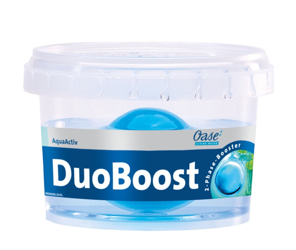 Βασικά χαρακτηριστικάΣημαντική βελτίωση της ποιότητας του νερού και της βιολογίας της λίμνηςΑπλό στη χρήση, όσο συχνά απαιτείταιΣημαντικά ιχνοστοιχεία και μέταλλα για όλους τους τύπους λιμνώνΧαρακτηριστικό γνώρισμαΒΑΣΗ ΓΙΑ ΚΑΘΑΡΟ ΝΕΡΟ : Επηρεάζει θετικά τη βιολογία της λίμνηςΑΠΛΟ: Τοποθετήστε το τζελ ή τη μπάλα απευθείας στο φίλτρο ή τη λίμνη - εάν η λίμνη περιέχει ψάρια, τοποθετήστε τις μπάλες στο κλειστό δίχτυΓΙΑ ΟΛΟΥΣ ΤΟΥΣ ΤΥΠΟΥΣ ΛΥΜΠΩΝ: Σημαντικά ιχνοστοιχεία και μέταλλα για όλα τα είδη λιμνώνΕΠΙΔΡΑΣΗ ΔΥΟ ΦΑΣΕΩΝ: Χρήση σε δύο φάσειςΠληροφορίες ΠροϊόντοςΤο DuoBoost έχει αναπτυχθεί ειδικά για την υποστήριξη της βιολογίας της λίμνης. Αποτελείται από δύο συμπληρωματικές φάσεις δράσης:Η πρώτη φάση δράσης είναι ένα τζελ που τοποθετείται κατευθείαν στη λίμνη ή στο θάλαμο φίλτρου. Αυτό το τζελ είναι ένα εξαιρετικά δραστικό υγρό που περιέχει ένζυμα και βακτήρια που απομακρύνει την οργανική βρωμιά, το αμμώνιο και τα νιτρώδη. Τα βακτήρια του φίλτρου ενεργοποιούνται ταυτόχρονα.Η δεύτερη φάση δράσης είναι μια μπάλα διαμέτρου 2 cm ή 5 cm που διαλύεται με την πάροδο του χρόνου, απελευθερώνοντας σημαντικά ιχνοστοιχεία, συνυποστρώματα, μέταλλα και πολύτιμα πρόσθετα που διαφορετικά είναι δύσκολο να τοποθετηθούν σε μια τεχνητή λίμνη. Εάν απαιτείται, μπορείτε να επαναλάβετε τη θεραπεία με DuoBoost αρκετές φορές το χρόνο.Και οι δύο φάσεις θέτουν τα θεμέλια για την επίτευξη καθαρού, υγιεινού νερού και εξαιρετικής βιολογίας λιμνών. Εάν το νερό είναι πράσινο, ωστόσο, θα πρέπει να χρησιμοποιήσετε ένα διαυγαστήρα UVC για να αφαιρέσετε τα φύκια που προκαλούν το πρόβλημα.Το τζελ και οι μπάλες μπορούν να τοποθετηθούν κατευθείαν στο φίλτρο ή στη λίμνη. Οι μπάλες θα διαλυθούν εντελώς με την πάροδο του χρόνου. Εάν η λίμνη περιέχει ψάρια, τοποθετήστε τις μπάλες στο κλειστό δίχτυ πριν τις χρησιμοποιήσετε