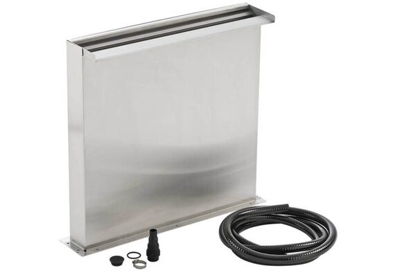 Waterfall KitWaterfall Kit 60Παράδειγμα εφαρμογής: Το Waterfall Kit 60 εγκαθίσταται σε μια στεγανή δεξαμενή με χαρακτηριστικά προϊόντος potTop cacheΧαριτωμένοι καταρράκτες από ανθεκτικό και μη σκουριασμένο ανοξείδωτο χάλυβαΜεμονωμένα σχέδια και δυνατότητες εύκολης εγκατάστασης χάρη στα δύο διαφορετικά πλάτηΕύκολη μετασκευή πρόσθετου φωτισμού καταρράκτη για ατμοσφαιρικούς φωτισμούςΣύστασηΚαθαρίστε τακτικά την επιφάνεια από ανοξείδωτο χάλυβα για να αποφύγετε την προσκόλληση αποθέσεων.Αποτέλεσμα εικόνας για OASE WATERFALL KIT 30Για κομψούς τόνους φωτισμού βράδυ, μπορείτε επίσης να εγκαταστήσετε το αντίστοιχο LED φωτισμού Waterfall (* προαιρετικό)/>Αριθμός στοιχείων: 70775Παράδειγμα εφαρμογής: Το Waterfall Kit 60 εγκαθίσταται σε μια στεγανή δεξαμενή με γλάστρα μνήμης<img src=Guarantee - years  Waterfall KitApplication example: Waterfall Kit 30 installed in a watertight reservoir with cache potTop product characteristicsGraceful waterfalls of robust and non-rusting stainless steelIndividual design and easy install possibilities thanks to the two different widthsEasy retrofitting of additional waterfall illumination for atmospheric light accentsRecommendationClean the stainless steel surface regularly to prevent deposits from sticking.For stylish evening light accents, you can also install the matching Waterfall Illumination LED (*optional)Item number: 70775Application example: Waterfall Kit 60 installed in a watertight reservoir with cache potProduct characteristicsCompact and robust waterfall with a substructure of high quality stainless steel 1.4401 (V4A), available in 2 widthsEasy installation on a solid substrate (e.g. a concrete slab) for use in a shallow water zone or on the pond edge, thanks to lateral fastening lugsIt is also possible to install with a combination of water reservoir and suitable cover. Simply bolt it onto the reservoir and decorate it with pebbles – that's it!Easy maintenance thanks to the removable rear panelIncluded in the scope of delivery: a threaded opening on the underside, stepped hose adapter (19, 25, 32, 38 mm) and plug, as well as a 3 m hose with stainless steel fastening clampOptional waterfall illumination can be easily installed thanks to the clever integrated light feed-throughTechnical dataDimensions (L x W x H) mm 145 x 605 x 600Net weight kg 12.50Guarantee Years 2Overrunning width mm 600Suction-side connection mm 25Suction-side connection 1"Item number 70775EAN 4010052707754Guarantee - 2 years Material/><img src=