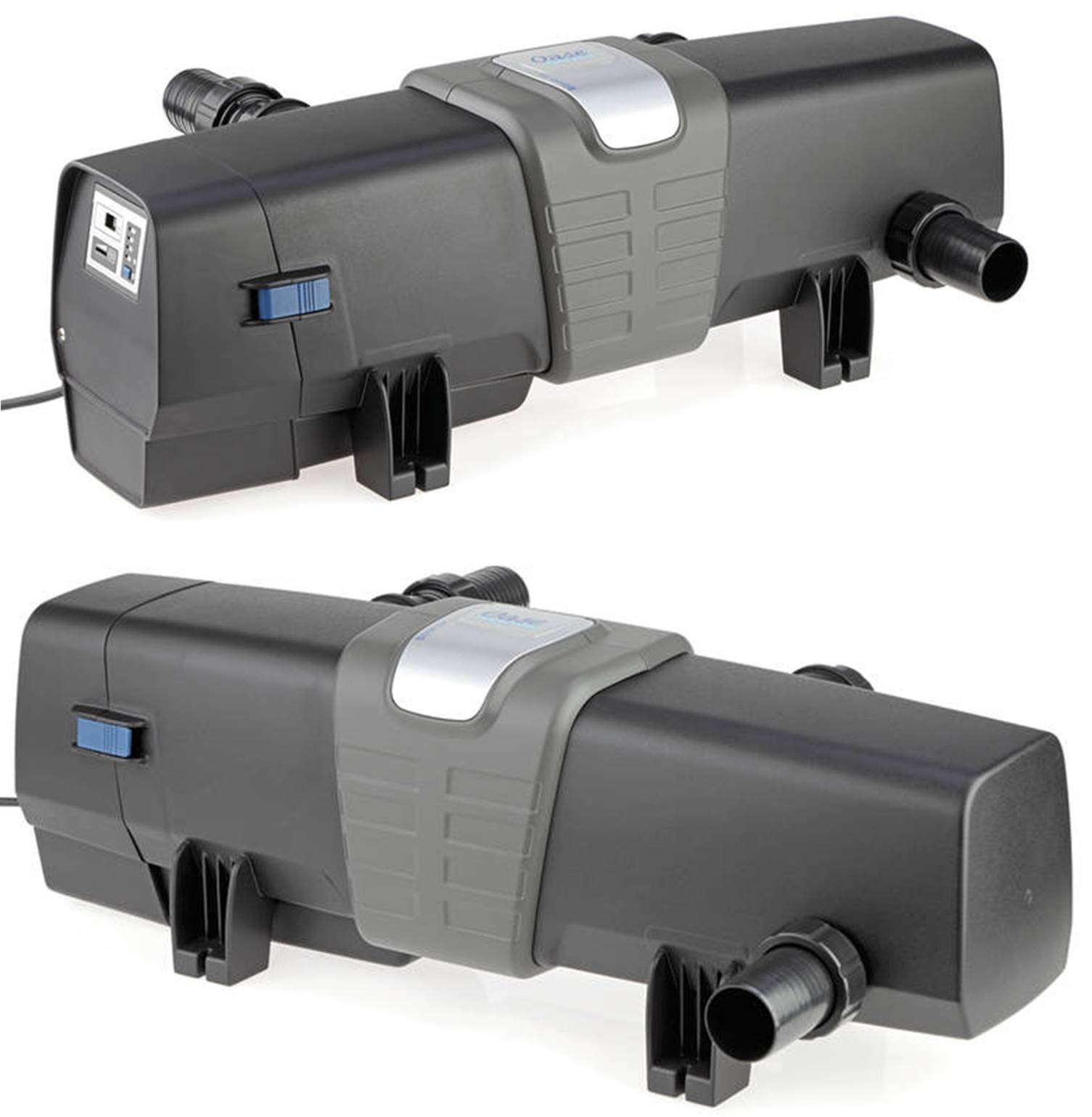 />Bitron Eco 240 WΔιαυγαστής UVCΑριθμός στοιχείων: 56410Κορυφαία χαρακτηριστικά του προϊόντοςΜέγιστη απόδοση, χάρη στον τέλειο συνδυασμό ταχύτητας ροής και έντασης ακτινοβολίαςΜειωμένο κόστος βολβών χάρη στη μεγαλύτερη διάρκεια ζωής κατά 50% (12.000 ώρες)Το κόστος ενέργειας μειώνεται έως και 50% με την ίδια ικανότητα καθαρισμού *<img src=  Patent  Automatic self-cleaning  UVC service life - hours  UVC protection  Function check  CE Declaration  VDE-certifiedΕγγύηση (+ εγγύηση αιτήματος) 3 έτη Δίπλωμα ευρεσιτεχνίας Αυτόματη αυτοκαθαριζόμενη διάρκεια ζωής UVC - ώρες UVC προστασία Έλεγχος λειτουργίας Δήλωση CE Πιστοποιητικό VDE />                    <img src=  /> <img src=  /><img src= /><img src= width=Product characteristicsHigh intensity treatment of suspended algae, turbidity and harmful bacteria in the pond waterInnovative UVC bulb technology with 50% longer service life (12,000 h) - developed in cooperation with PhilipsHigh volume UVC housing with a new design and organic shape for a particularly long water Retention timeEco control system enables maximum energy efficiency with savings potential of up to 50 %*More protection for the climate. Eco mode saves up to 525 kg CO²/year*Intelligent bypass regulation automatically adapts the flow rate to the pump capacity in the filter systemIf desired, continuous irradiation or device switch off are possible at the touch of a buttonClever UVC function monitor, display for bulb change and water temperatureFully effective UVC radiation at all times, thanks to patented cleaning automation for the UV bulbSimple connection to other 2" filter systems100%, VDE-certified safety; does not cause eye injuriesIncluding OASE Clear Water Guarantee in conjunction with the OASE flow through filters, BioSmart, BioTec and ProfiClearConcentrated UVC power clears ponds up to CH0177# /><img src= Patent Automatic self-cleaning UVC service life - hours UVC protection Function check CE Declaration VDE-certifiedGuarantee (+ request guarantee) 3 years Patent Automatic self-cleaning UVC service life - hours UVC protection Function check CE Declaration VDE-certifiedDetails width=Automatic cleaning rotorThe automatic cleaning rotor is continuously guided around the quartz glass tube by the water flow and prevents debris from settling.  width=Closure technologyThe quick release closure now allows direct access to the bulb without dismounting the quartz glass. Replacement of the UVC bulb just takes a few minutes.  width=Automatic bypass regulationThe integrated bypass membrane regulates water distribution automatically based on the water flow and adapts itself to changing conditions, such as the Seasonal Flow Control system, for example.  width=Automatic control unitIt not only shows the actual status of your bulb and the water temperature, it also allows you to adapt the capacity depending on your requirements. Service />  <img src= />