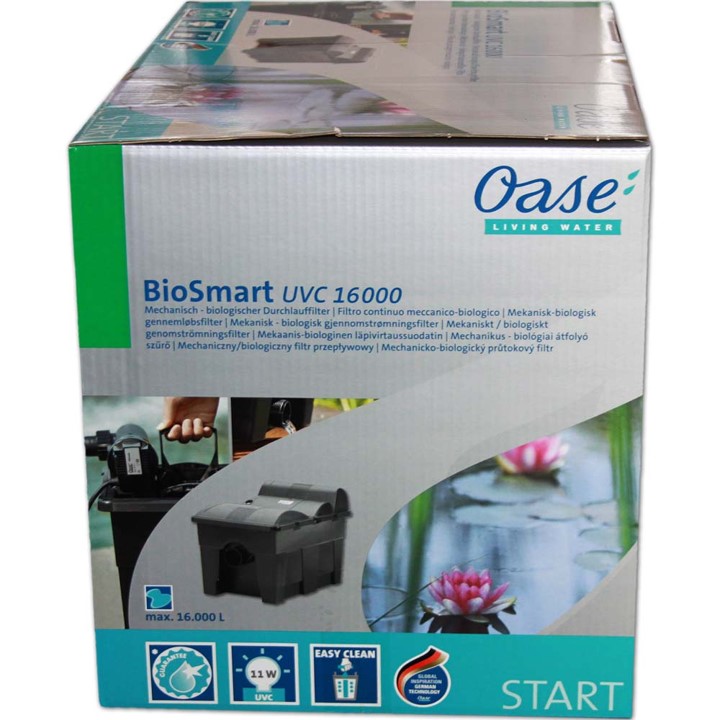 BioSmart UVC 16000Κωδικός 57377Βασικά χαρακτηριστικάΑξιόπιστη και ευέλικτη εφαρμογή - φίλτρο εισόδου σε επίπεδο εισόδου. Εύκολη συντήρηση χάρη στον καθαρισμό λαβών και την αποστράγγιση κάτω. Ένδειξη στάθμης ρύπων και ένδειξη θερμοκρασίας για βολική παρακολούθηση φίλτρου.Χαρακτηριστικό γνώρισμαΠρόσθετος εμπλουτισμός οξυγόνου μέσω ειδικής διοχέτευσης νερούΛαβές καθαρισμού για βολική συντήρησηΣυμπεριλαμβάνονται οθόνες για το επίπεδο ρύπων και τη θερμοκρασία του νερούΑποστράγγιση λάσπης για εύκολη αφαίρεση χονδροειδών συντριμμιώνΕύκολο στην απόκρυψη το φίλτρο μπορεί να εσοχή στο έδαφος έως ⅓ του ύψους τουΚατάλληλο για λίμνες έως 16,0 m³ χωρίς ψάρια, 8,0 m³ με χρυσόψαρα, 4,0 m³ με ψάρια koi.Εγγυημένο καθαρό νερό μέσω του συνδυασμού μηχανικού / βιολογικού καθαρισμού με αποτελεσματική τεχνολογία UVCΤαιριάζει βέλτιστα με το φίλτρο OASE AquaMax και τις αντλίες κοίτηςΤΕΧΝΙΚΑ ΔΕΔΟΜΕΝΑΔιαστάσεις (Π x Υ x Β) mm 380 x 560 x 410Ονομαστική τάση 230 V / 50 HzΚατανάλωση ισχύος W 14Μήκος καλωδίου ισχύος m 3,00Καθαρό βάρος kg 5,40Εγγύηση Έτη 2Ισχύς UVC W 11Αριθμός αφρών φίλτρου, συνολικές μονάδες 6Αριθμός μονάδων αφρού μπλε φίλτρου 3Αριθμός κόκκινων αφρών φίλτρου Μονάδες 3Οθόνη θερμοκρασίας ΝαιΣυνδέσεις εισόδου mm 19/25/32/38Συνδέσεις εισόδου ¾ ", 1", 1 ¼ ", 1 ½"Συνδέσεις εξόδου DN 75Συνδέσεις, εκκένωση λάσπης mm 38Συνδέσεις εκκένωσης λάσπης 1 ½ "Μέγιστη. ρυθμός ροής l / h 5500Κατάλληλο για λίμνες έως. m³ 16.0Κατάλληλο για λίμνες με ψάρι m³ 8.0Κατάλληλο για λίμνες με koi m³ 4.0ΑΝΤΑΛΛΑΚΤΙΚΑΘέση Ποσότητα SKU προϊόντοςB Αντλία ανταλλακτικών FP 3500 13742 11 Κάλυμμα UVC BioSmart 29404 12 Θερμόμετρο ουδέτερο 29594 13 Εσωτερικό κάλυμμα BioSmart 14000/16000 25731 14 Ανταλλακτικό κόκκινο αφρό BioSmart 35791 35 Ανταλλακτικό αφρό μπλε BioSmart 35792 36 Βάση αφρού DLF OEM03 34899 67 Κουτί φίλτρου BioSmart 8000-16000 με UVC 25729 18 Κιτ ανταλλακτικών BioSm 5-16000 w UVC 35204 19 Εξώφυλλο BioSmart 29405 111 Αντικατάσταση λαμπτήρα UVC 11 W 56112 114 περίβλημα νερού UVC DLF OEM03 34900 115 ASM UVC 11 W cpl. με υδάτινο νερό 10768 1 BioSmart UVC 16000SKU 5737Key FeaturesReliable and flexible implementation – entry-level flow-through filter. Easy maintenance thanks to cleaning handles and bottom drain. Pollutant level indicator and temperature indicator for convenient filter monitoring.CharacteristicAdditional oxygen enrichment through special water channellingCleaning handles for convenient maintenanceIncluding displays for pollutant level and water temperatureSludge drain for easy removal of coarse debrisEasy to conceal; the filter can be recessed into the ground to ⅓ of its heightSuitable for ponds up to 16.0 m³ without fishes, 8.0 m³ with goldfishes, 4.0 m³ with koi fish.Guaranteed clear water through the combination of mechanical/biological cleaning with effective UVC technologyOptimally matched to the OASE AquaMax filter and watercourse pumpsTECHNICAL DATADimensions (L x W x H) mm 380 x 560 x 410Rated voltage 230 V / 50 HzPower consumption W 14Power cable length m 3.00Net weight kg 5.40Guarantee Years 2UVC power W 11Number of filter foams, total Units 6Number of blue filter foams Units 3Number of red filter foams Units 3Temperature display YesInlet connections mm 19 / 25 / 32 / 38Inlet connections ¾", 1", 1 ¼", 1 ½"Outlet connections DN 75Connections, sludge discharge mm 38Sludge discharge connections 1 ½"Max. flow rate l/h 5500Suitable for ponds up to max. m³ 16.0Suitable for ponds with fish stock m³ 8.0Suitable for ponds with koi m³ 4.0SPARE PARTSPos. Product SKU QuantityB Spare pump FP 3500 13742 11 Cover UVC BioSmart 29404 12 Thermometer neutral 29594 13 Inner cover BioSmart 14000/16000 25731 14 Replacement foam red BioSmart 35791 35 Replacement foam blue BioSmart 35792 36 Foam holder DLF OEM03 34899 67 Filter box BioSmart 8000-16000 with UVC 25729 18 Spare connection kit BioSm 5-16000 w UVC 35204 19 Cover BioSmart 29405 111 Replacement bulb UVC 11 W 56112 114 UVC water housing DLF OEM03 34900 115 ASM UVC 11 W cpl. with waterhousing 10768 1